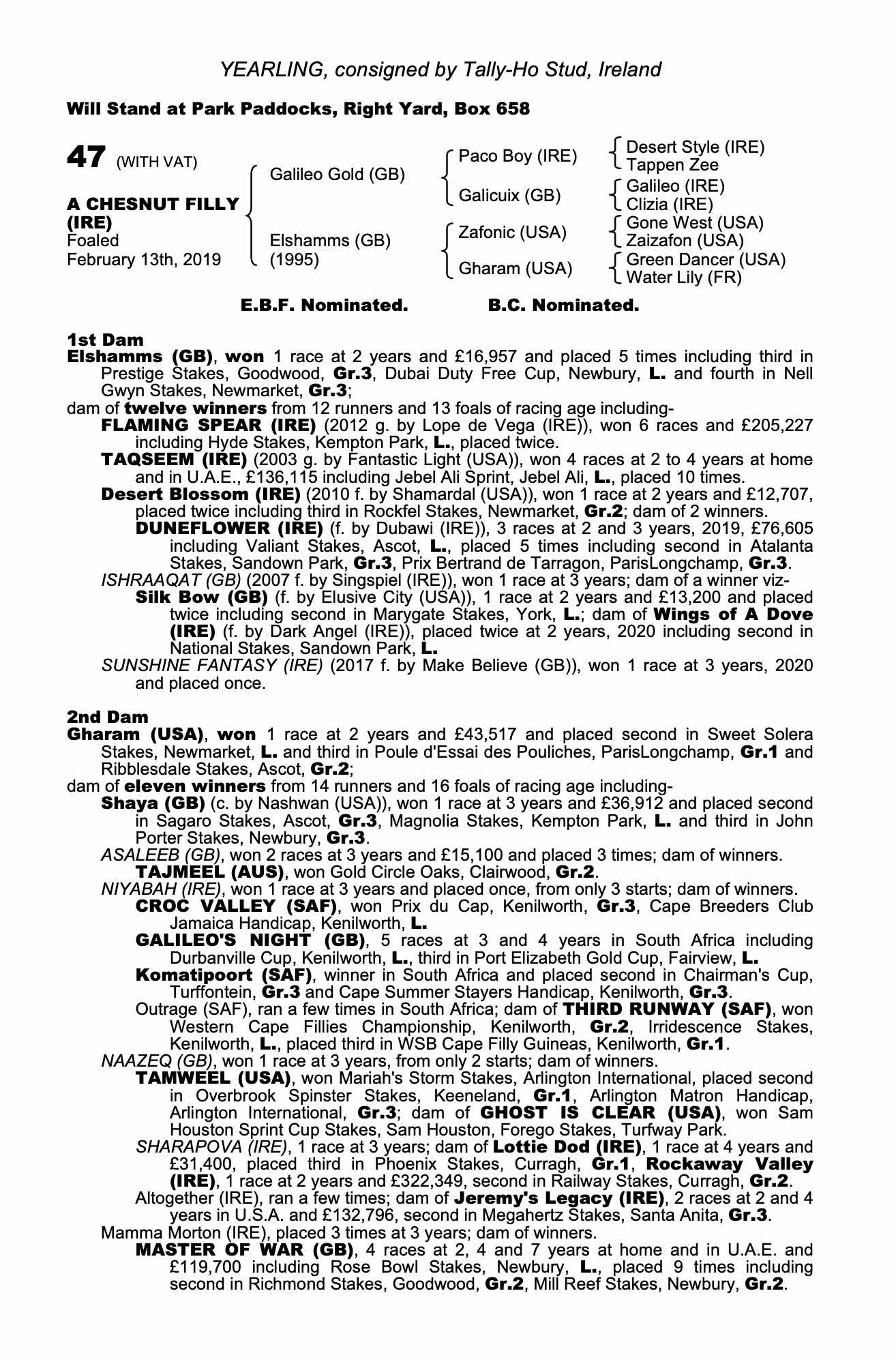 Consignor: Tally-Ho Stud, Ireland