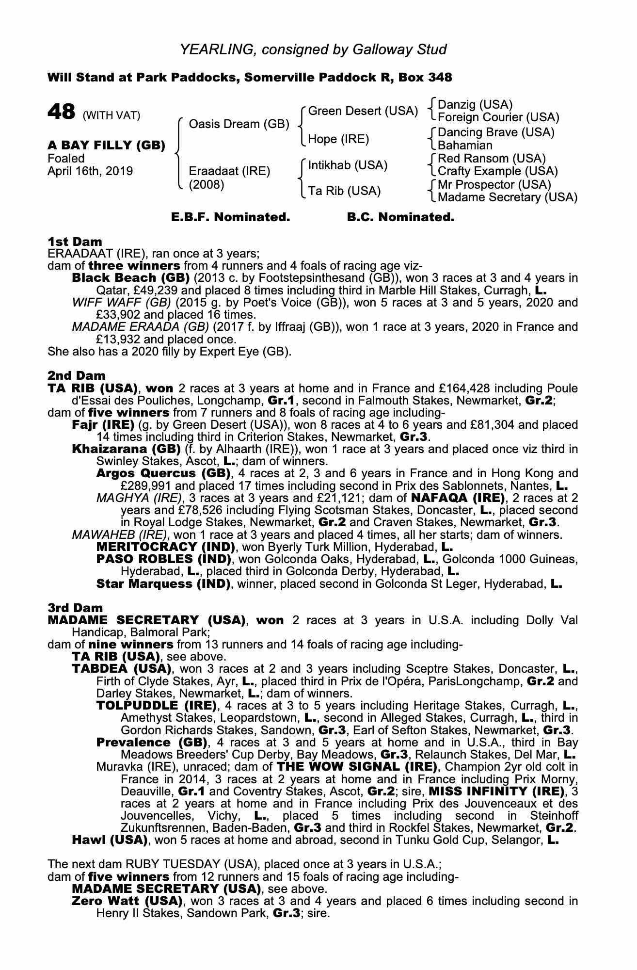 Somerville Yearling Sale 2021 lot 264 F. by Expert Eye (GB) 2020, Silfield Bloodstock=>Barry Lynch 5,000 gns
