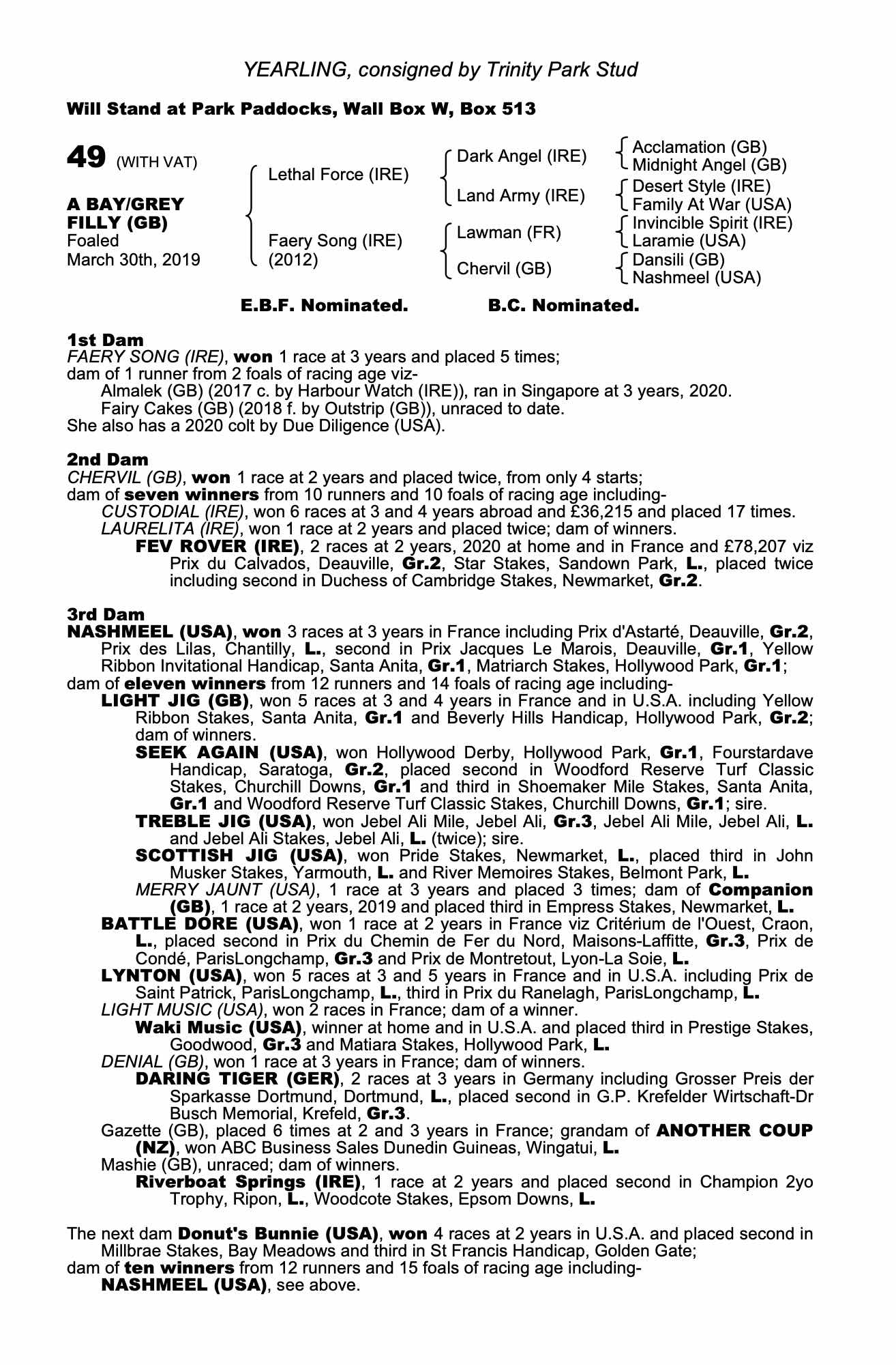 December Foal Sale 2019 lot 1303, Trinity Park Stud=>JS Bloodstock 1,000 gns