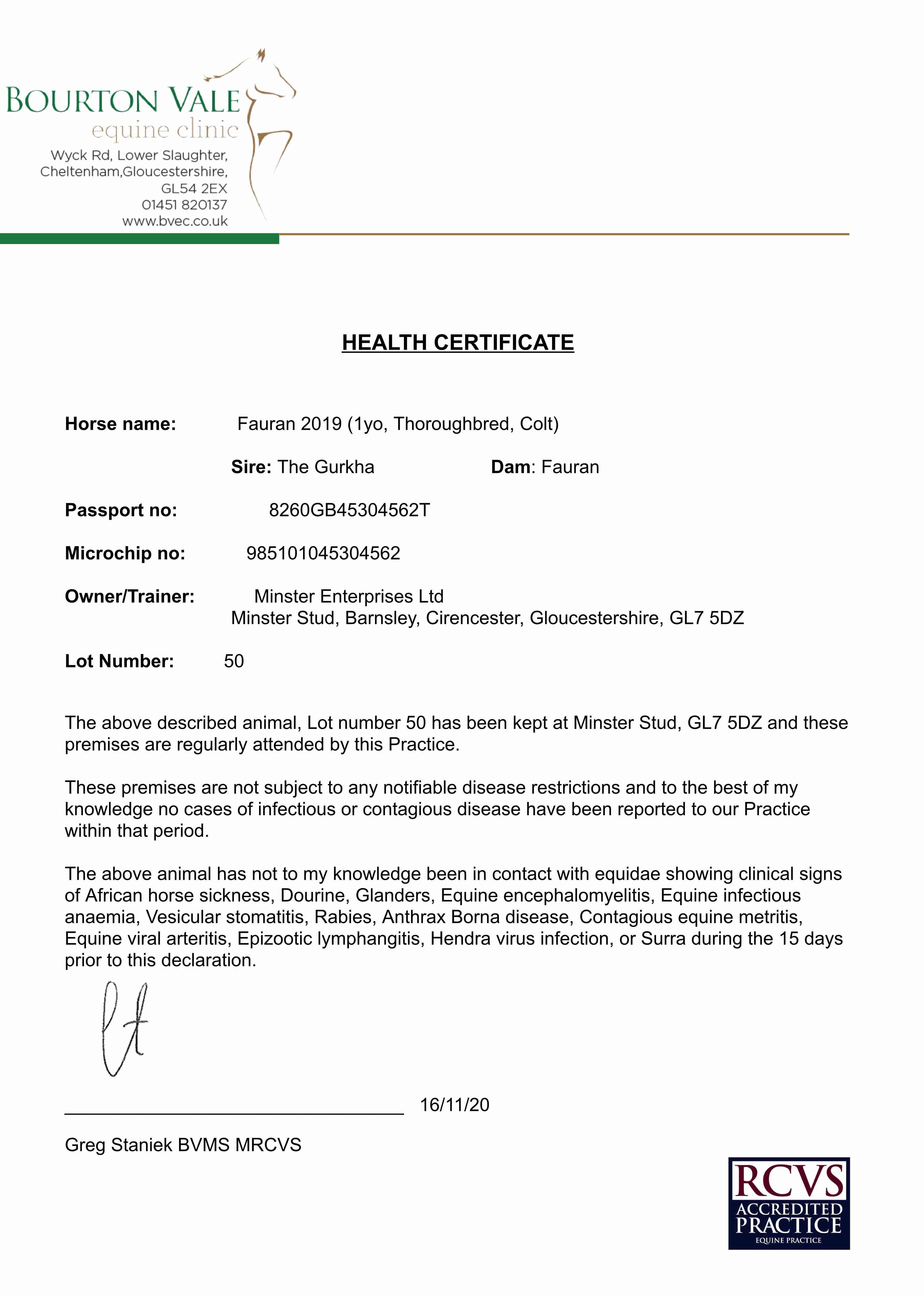 December Foal Sale 2019 lot 1056, Minster Stud=>Vendor 25,000 gns