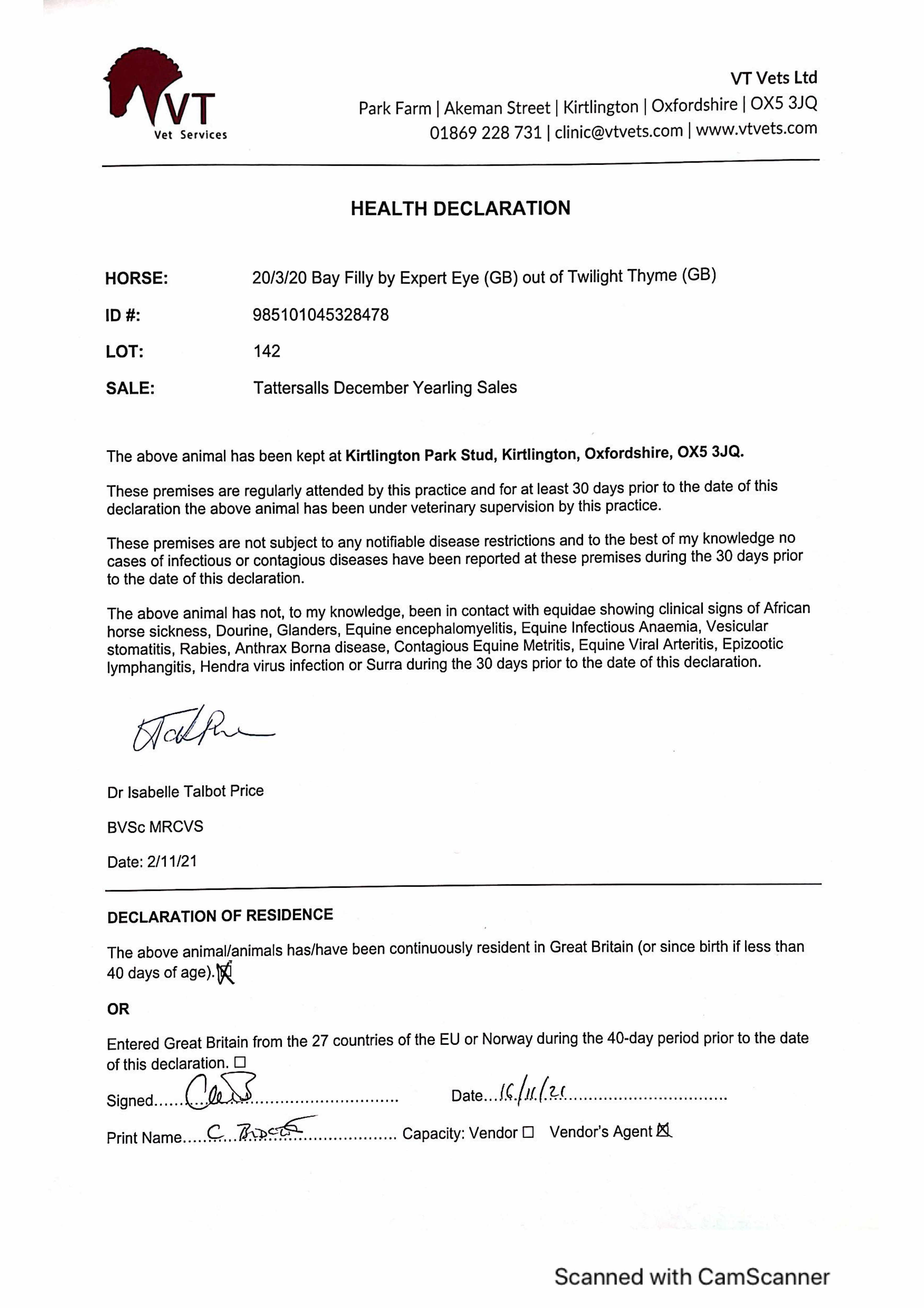 December Foal Sale 2019 lot 1216 F. by Showcasing (GB) 2019, Kirtlington Park Stud=>Howson & Houldsworth Bloodstock 29,000 gns