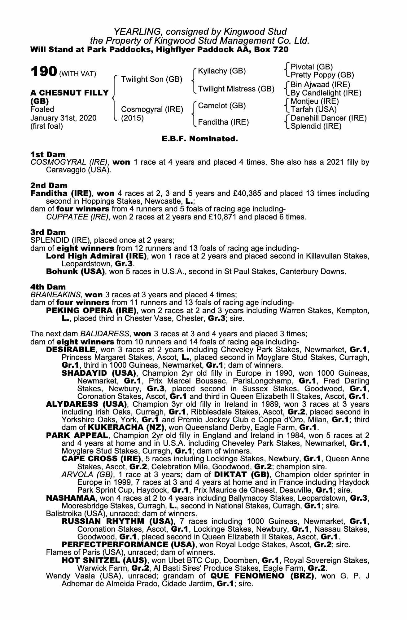 Consignor: Kingwood Stud