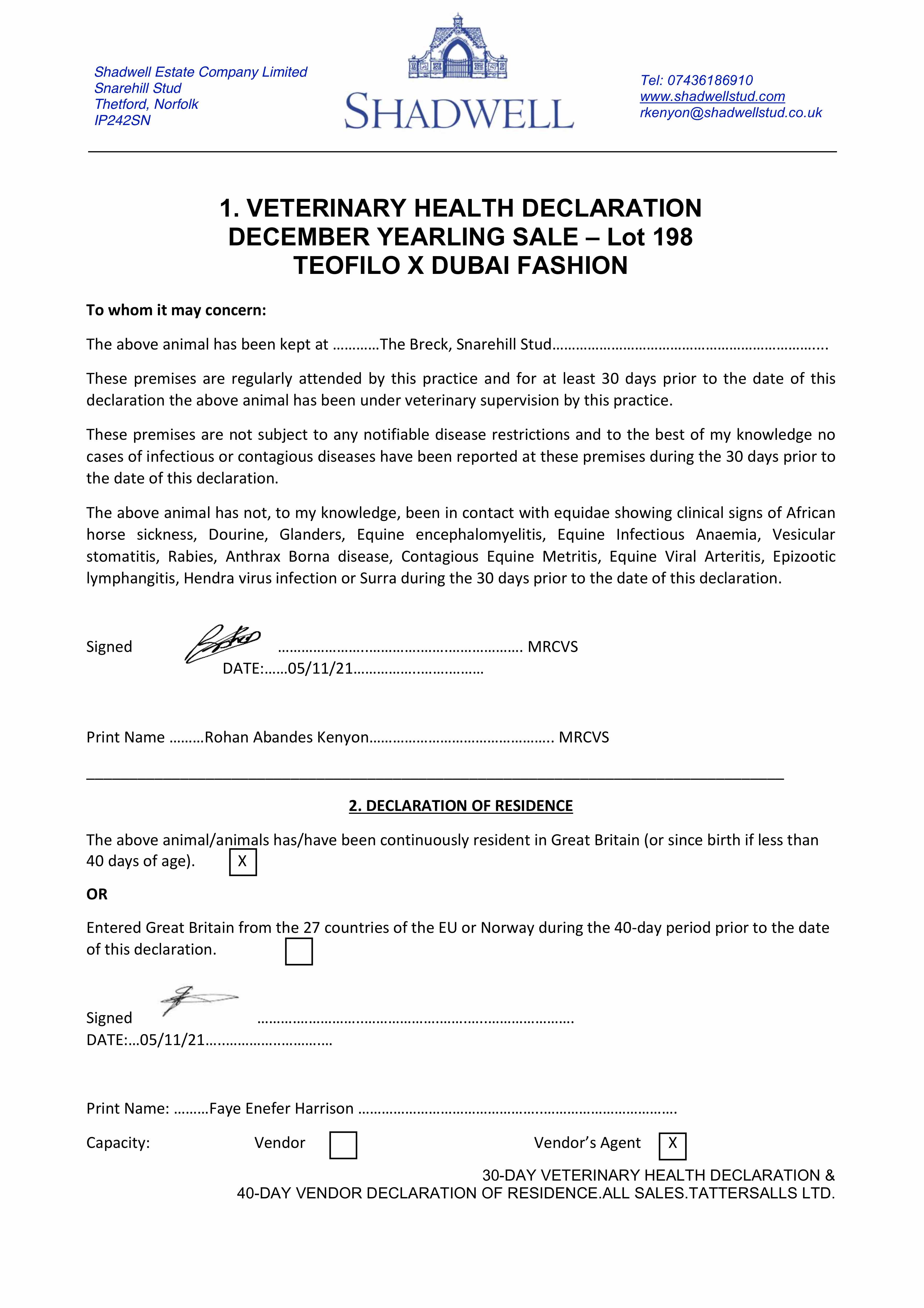 Consignor: Shadwell Estate Company Ltd.