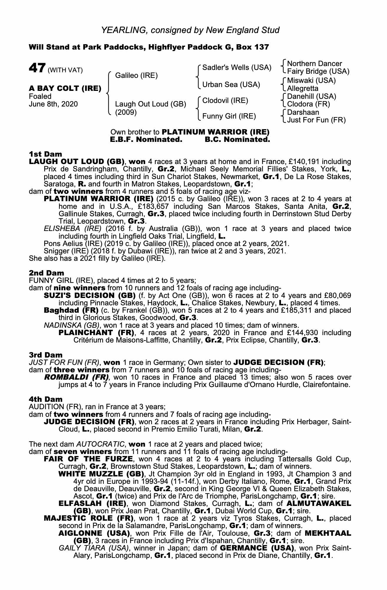 October Yearling Sale, Book 1 2020 lot 268 C. 2019, New England Stud=>Johnston Racing 95,000 gns