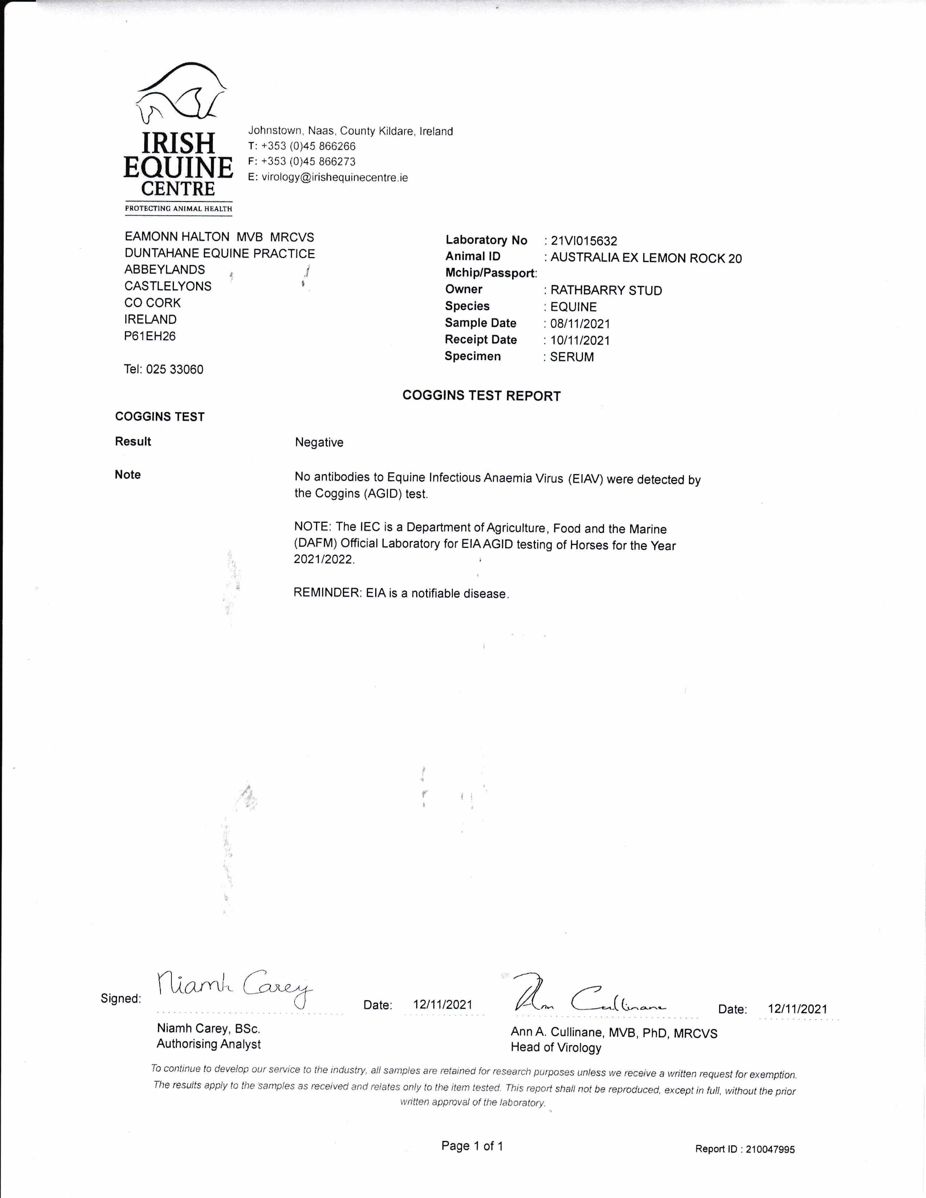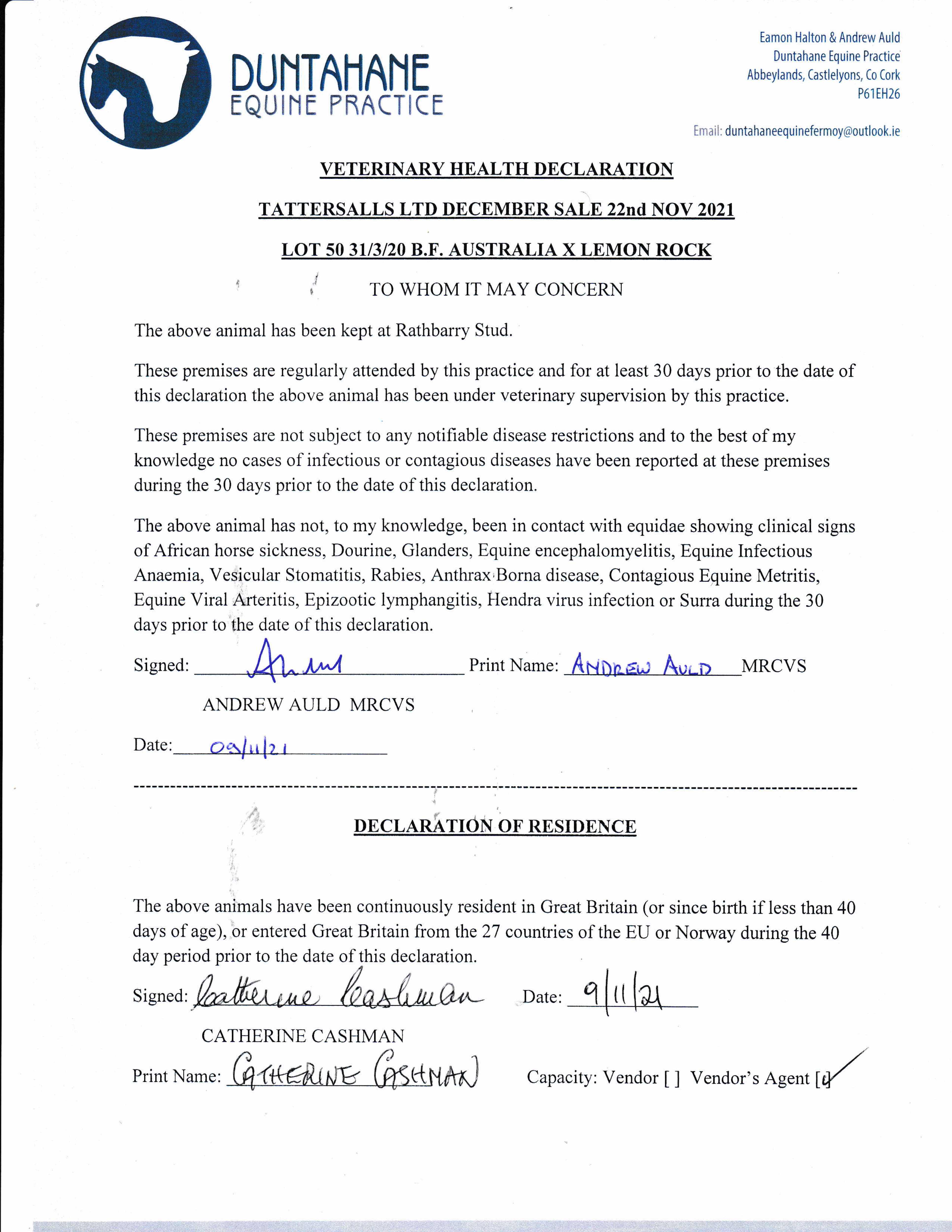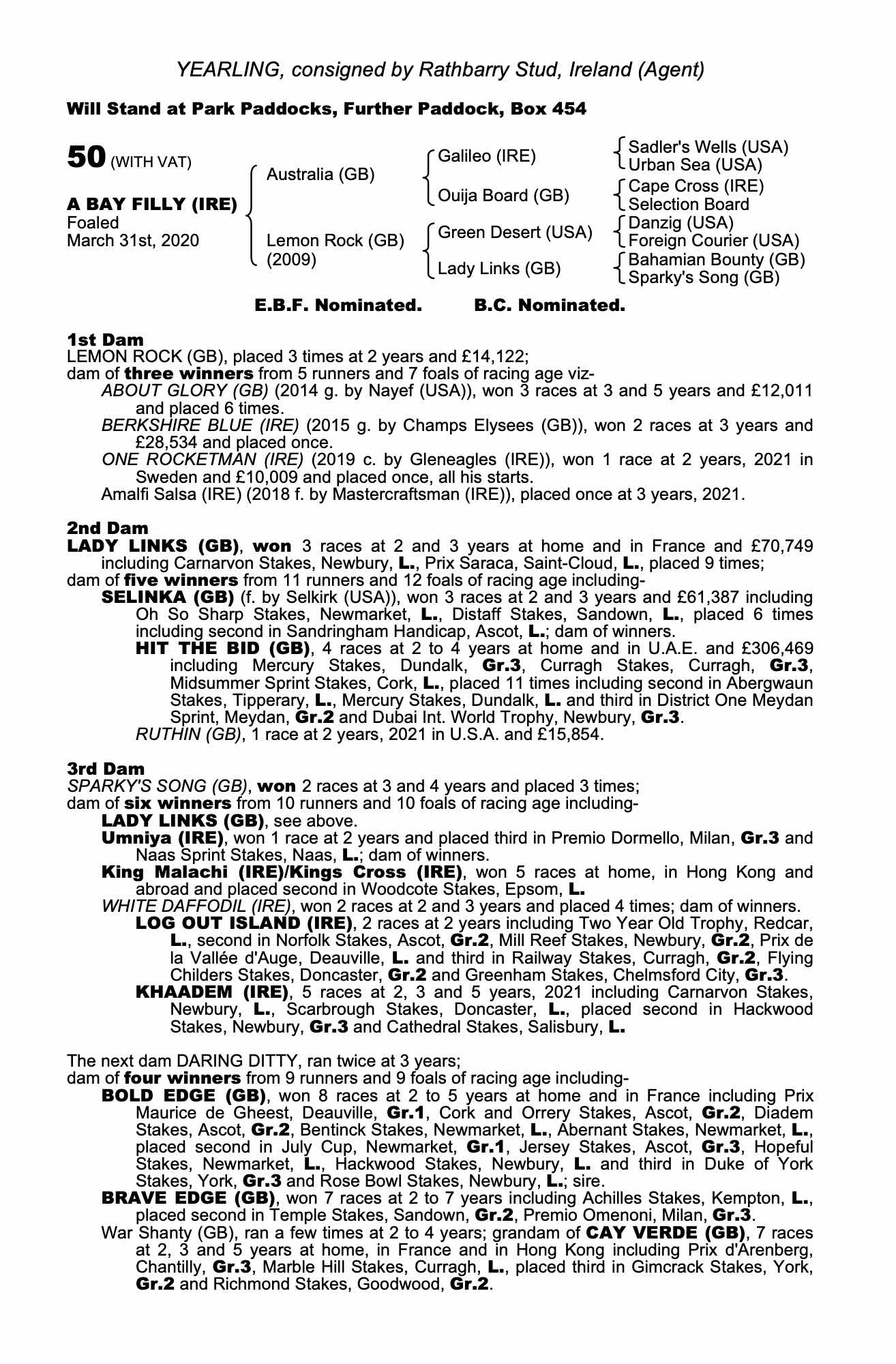 Consignor: Rathbarry Stud, Ireland (Agent)