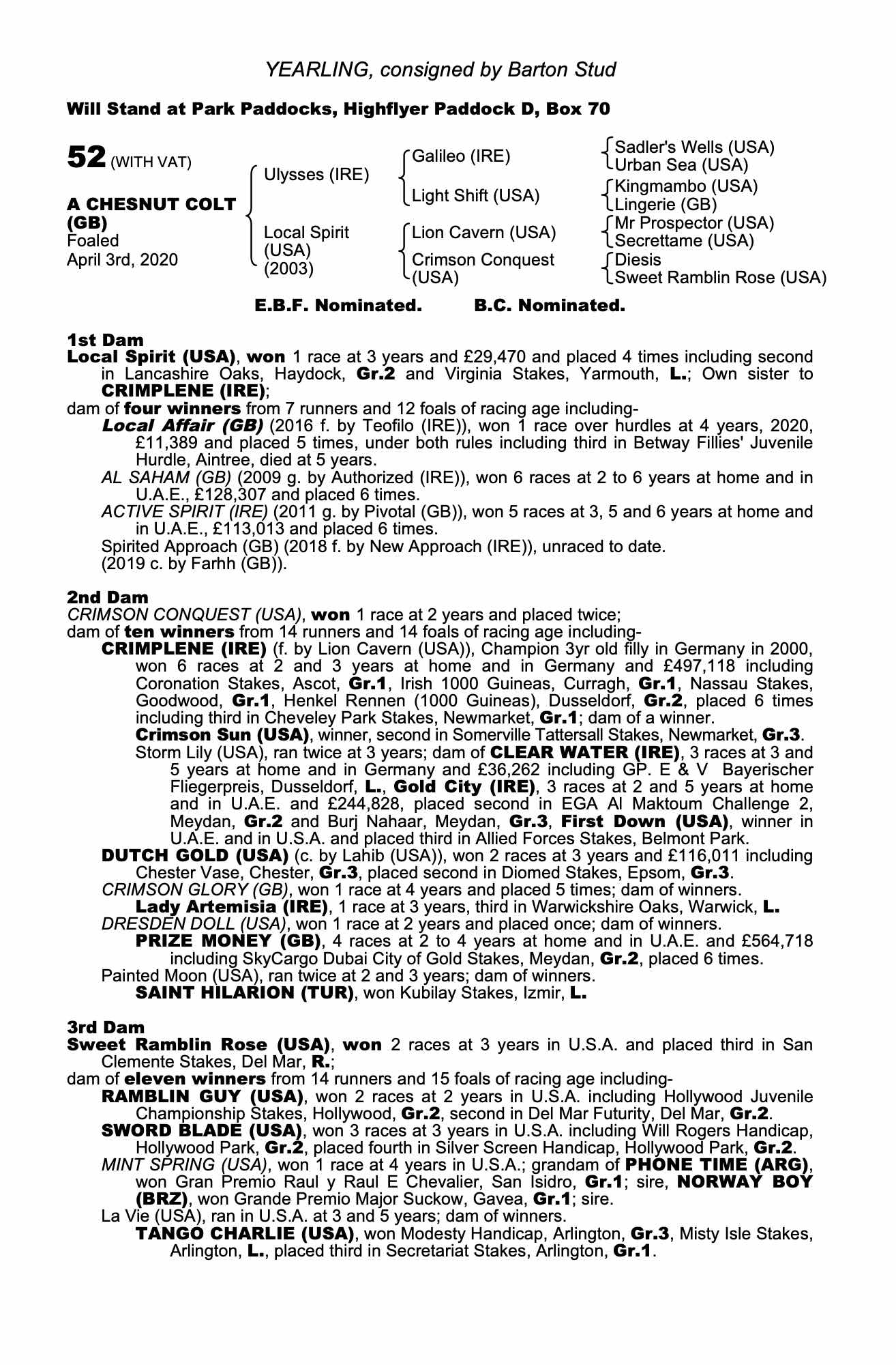 Online Sale - 19th January 2023 lot 5 Spirited Approach (GB) (M. by New Approach (IRE)), Starfield Stud, Ireland=>Ramzi Alghul 1,200 gns