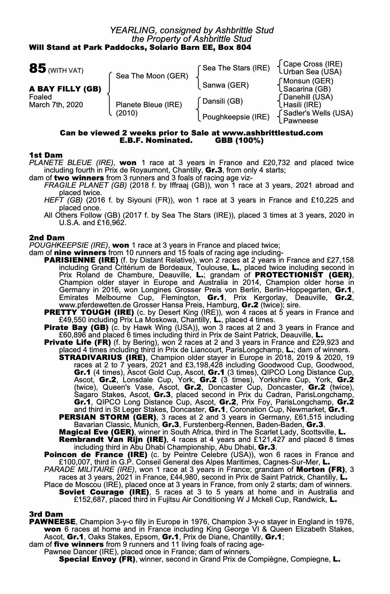 October Yearling Sale, Book 1 2018 lot 36 F. by Sea The Stars (IRE) 2017, Ashbrittle Stud=>White Birch Farm 140,000 gns