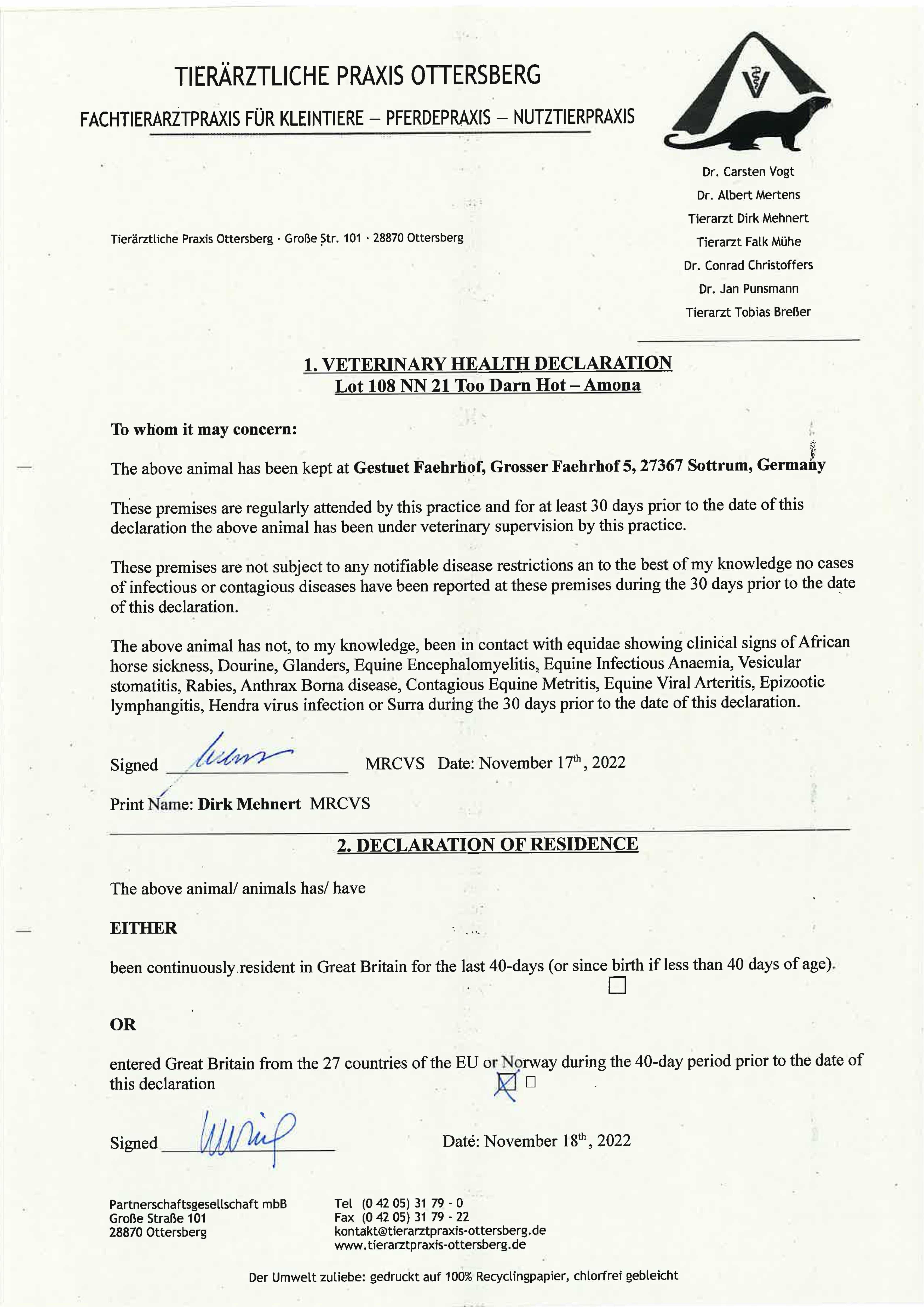 Consignor: Gestuet Faehrhof, Germany