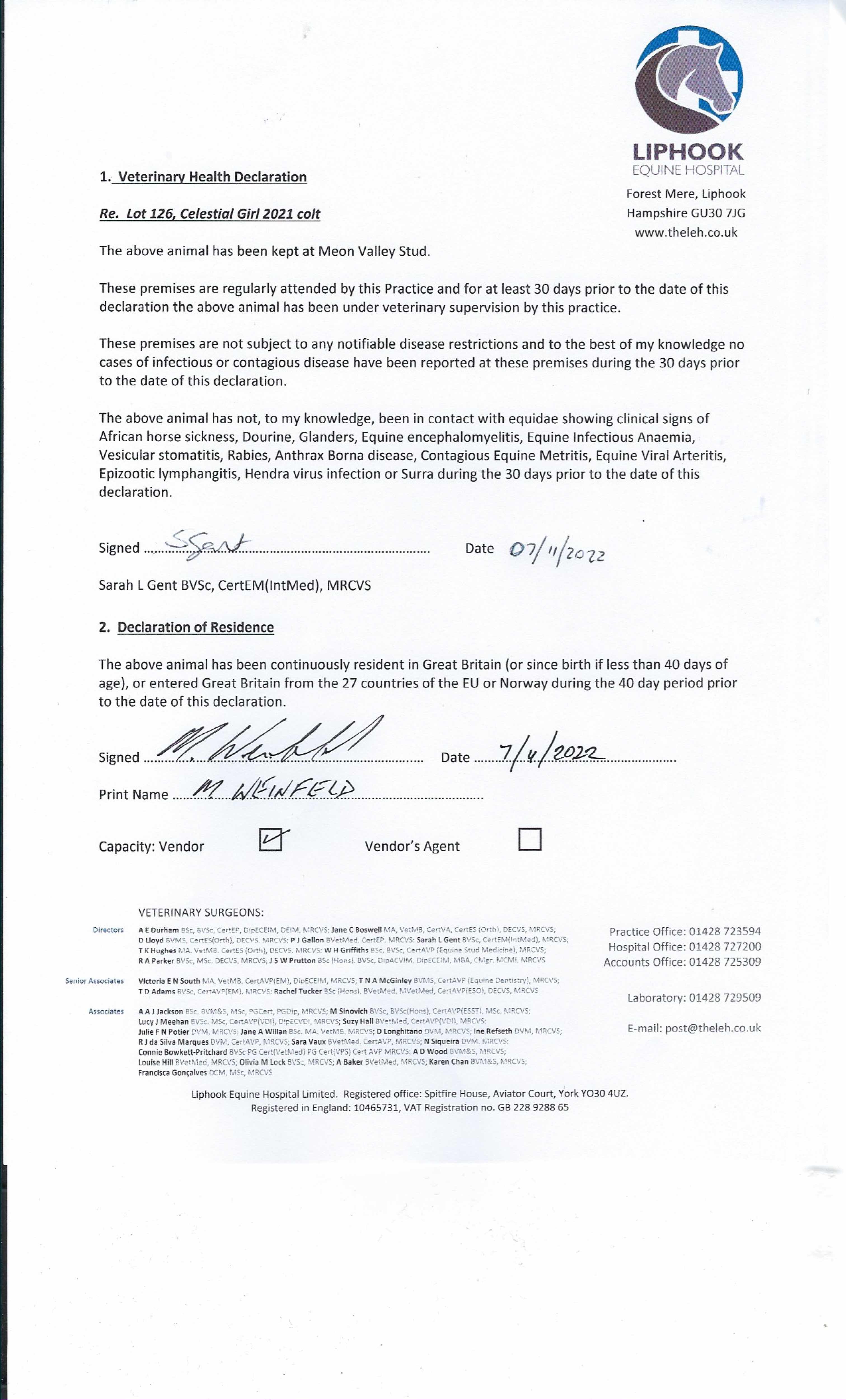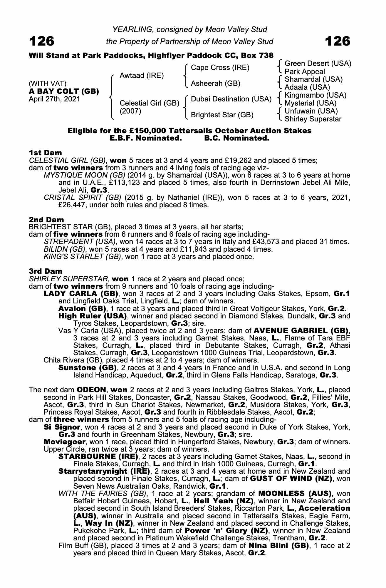 Consignor: Meon Valley Stud