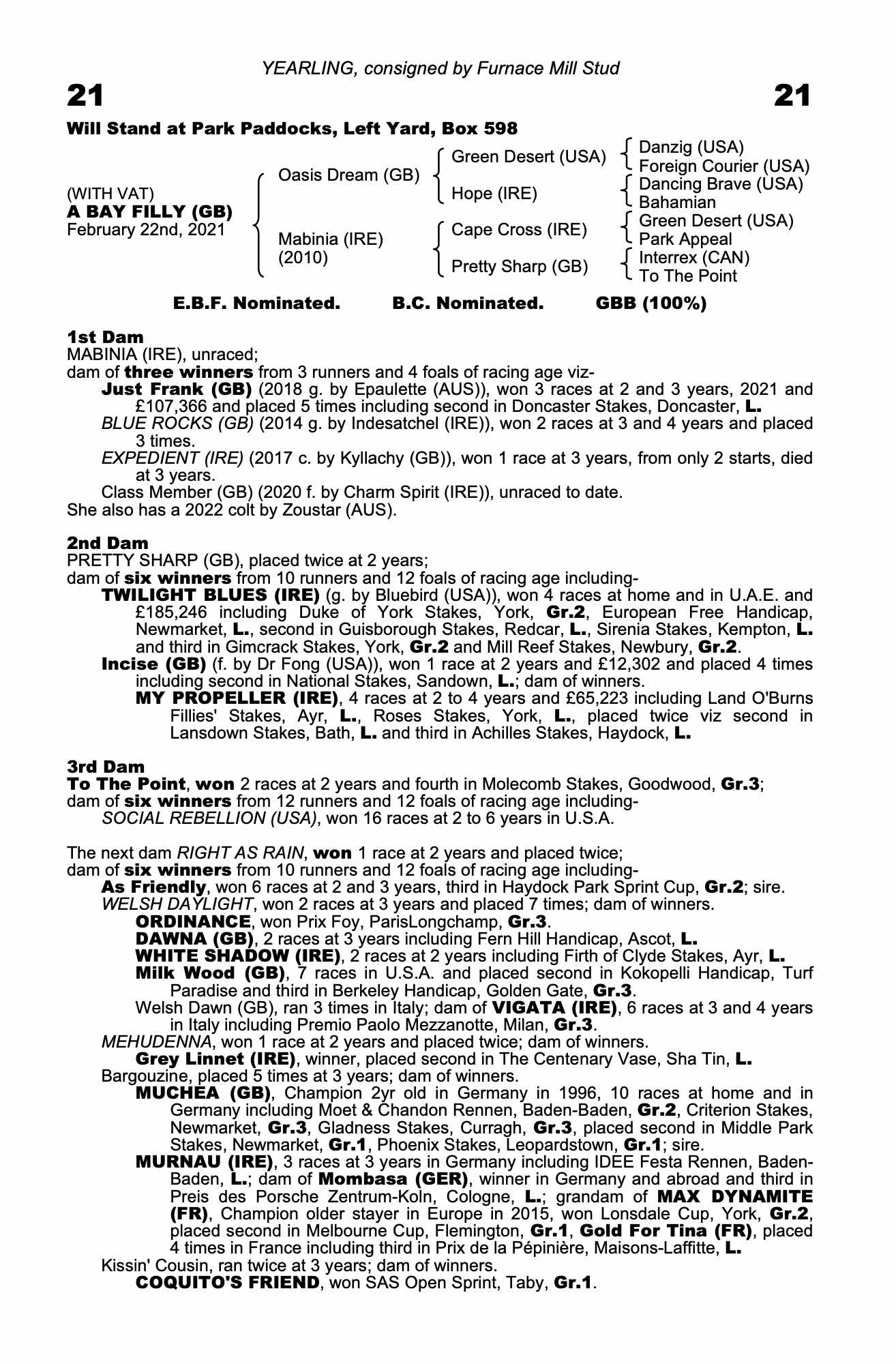 October Yearling Sale, Book 2 2021 lot 713 F. by Charm Spirit (IRE) 2020, Furnace Mill Stud=>Joe Foley 85,000 gns