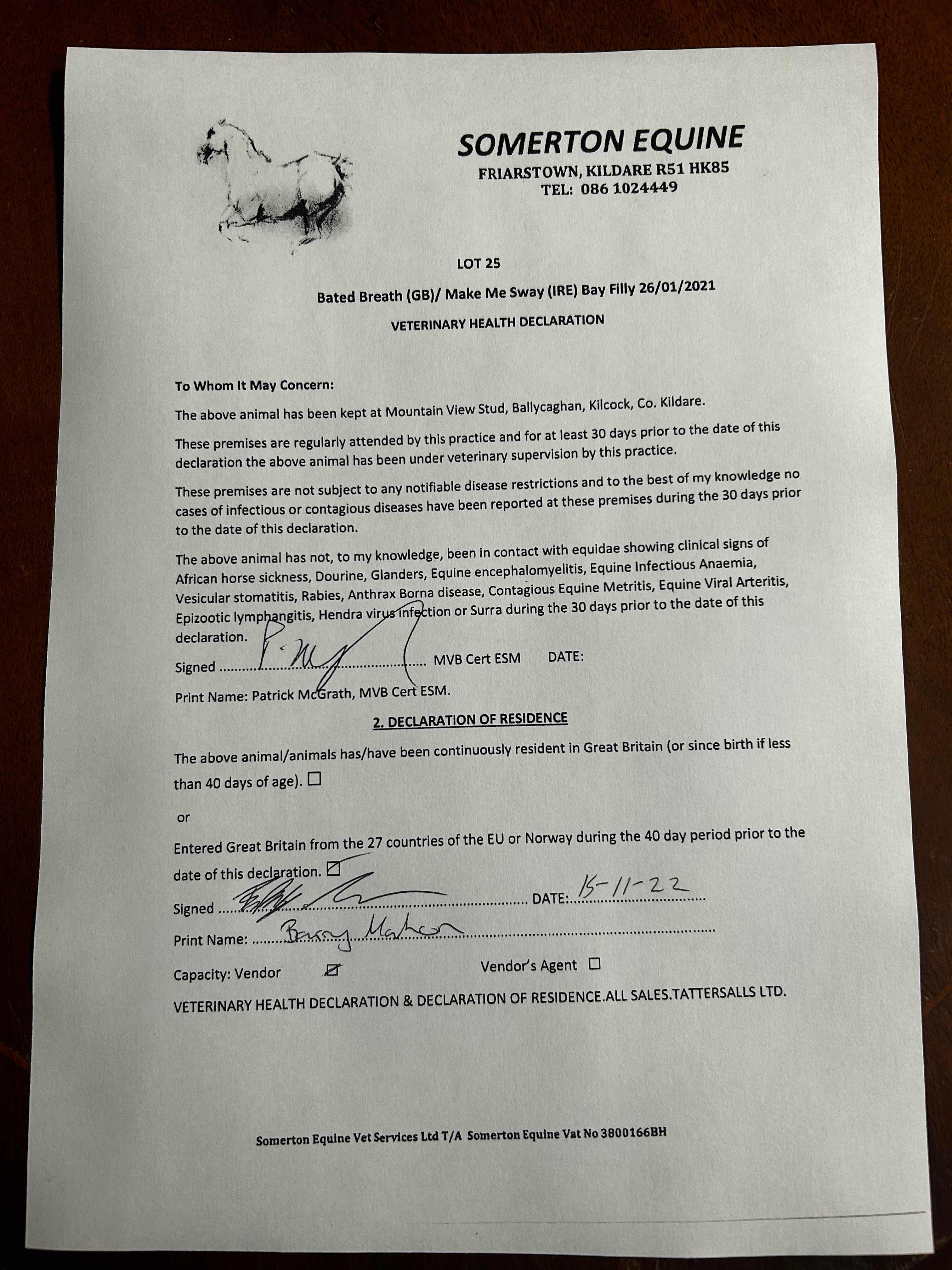 Consignor: Kilminfoyle House Stud, Ireland (Agent)
