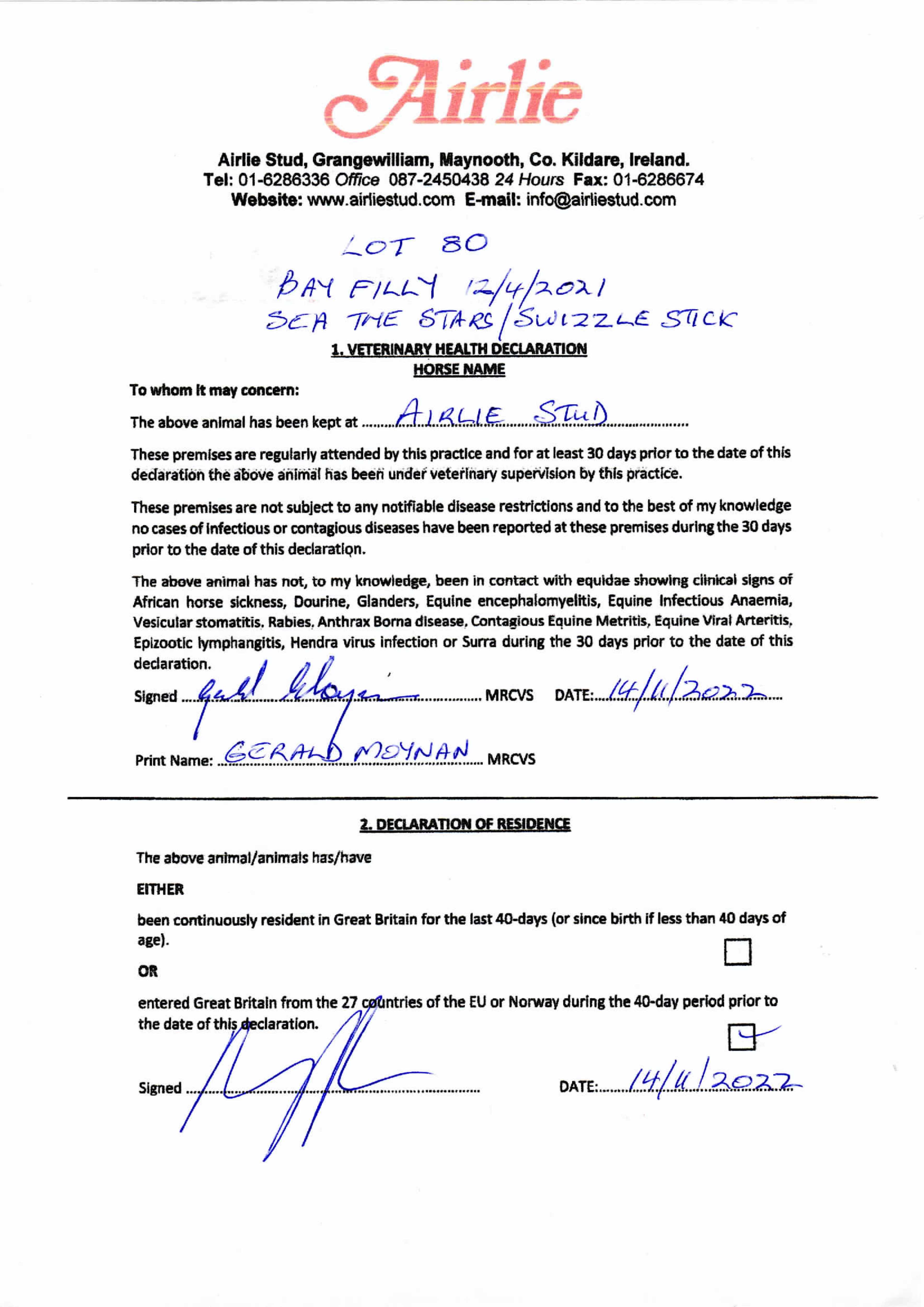 Consignor: Whatton Manor Stud