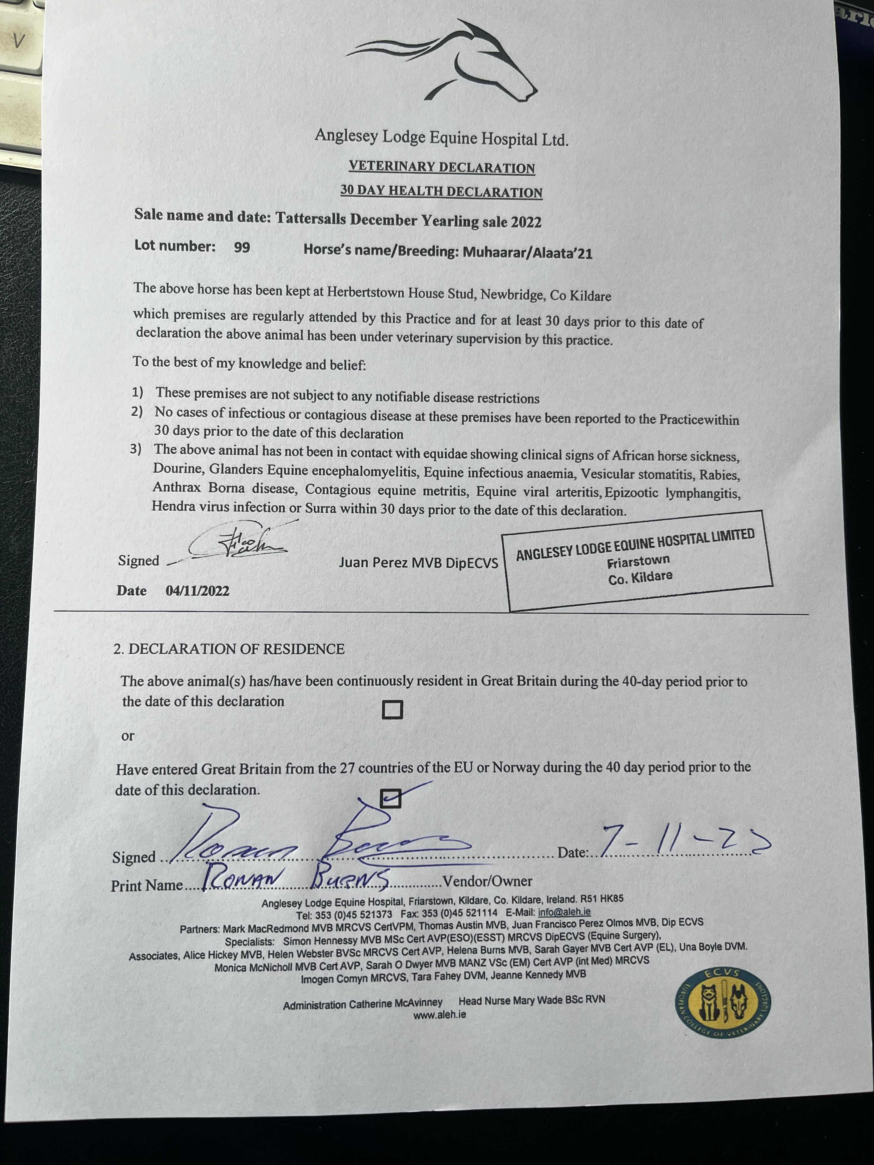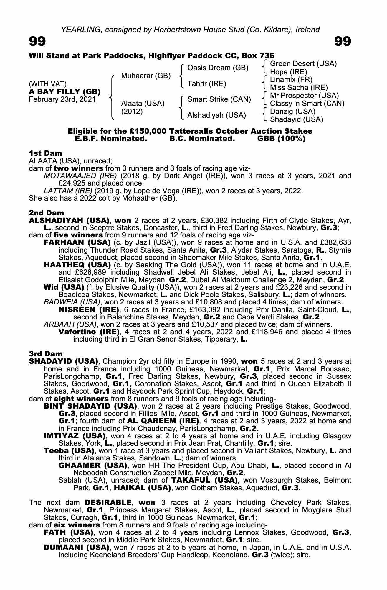 Consignor: Herbertstown House Stud (Co. Kildare), Ireland