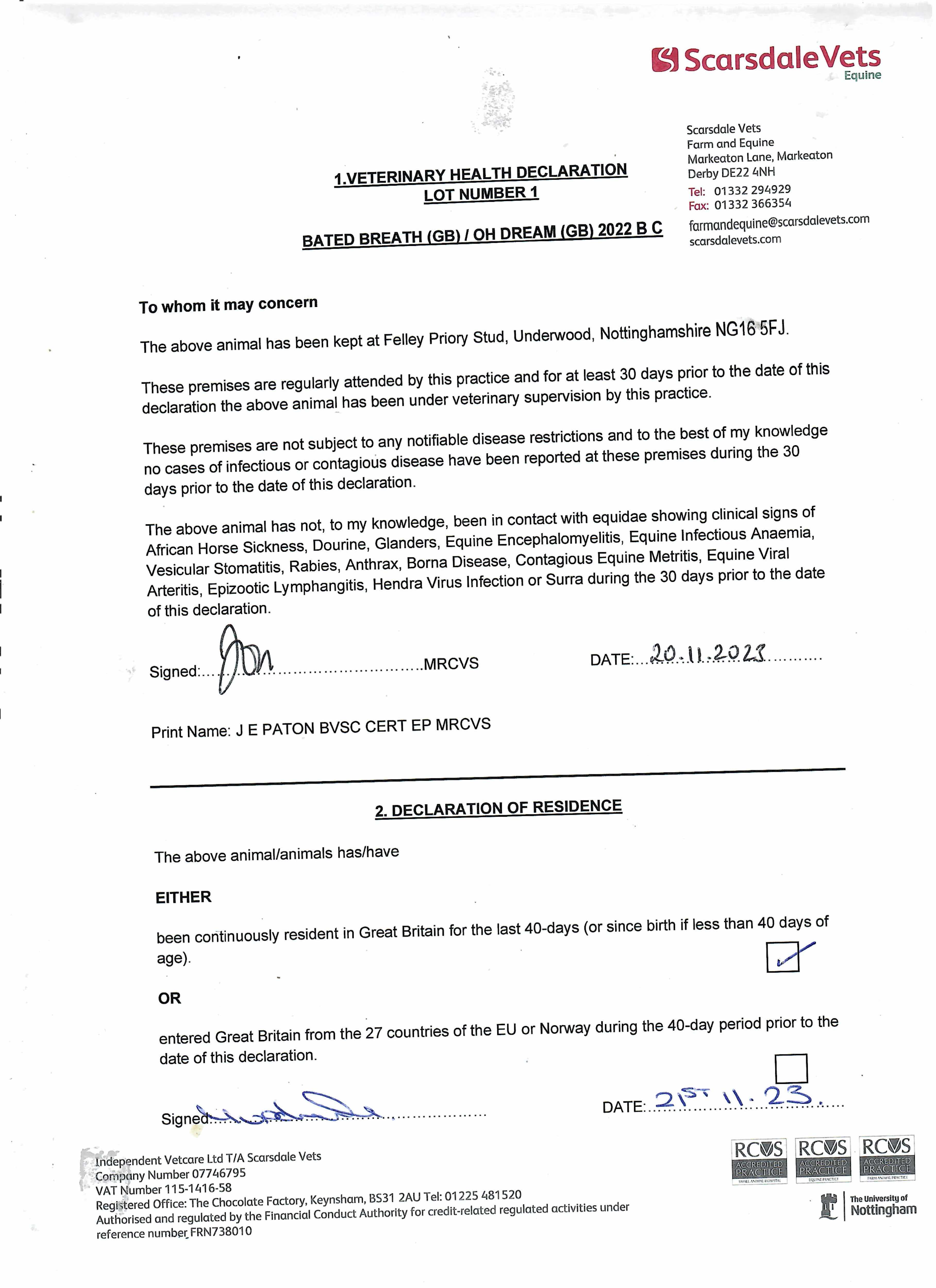 Consignor: Felley Priory Stud
