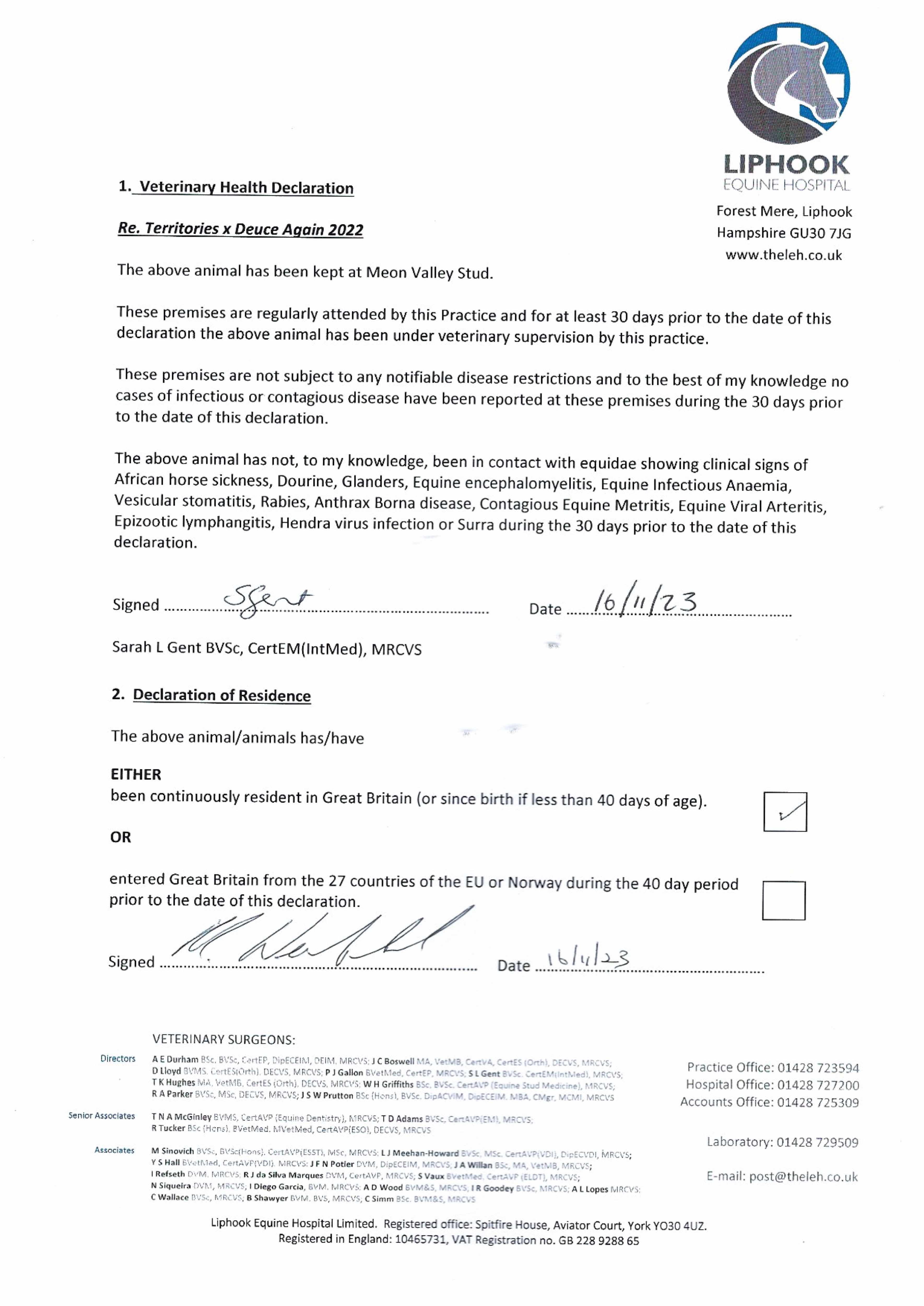 Consignor: Meon Valley Stud