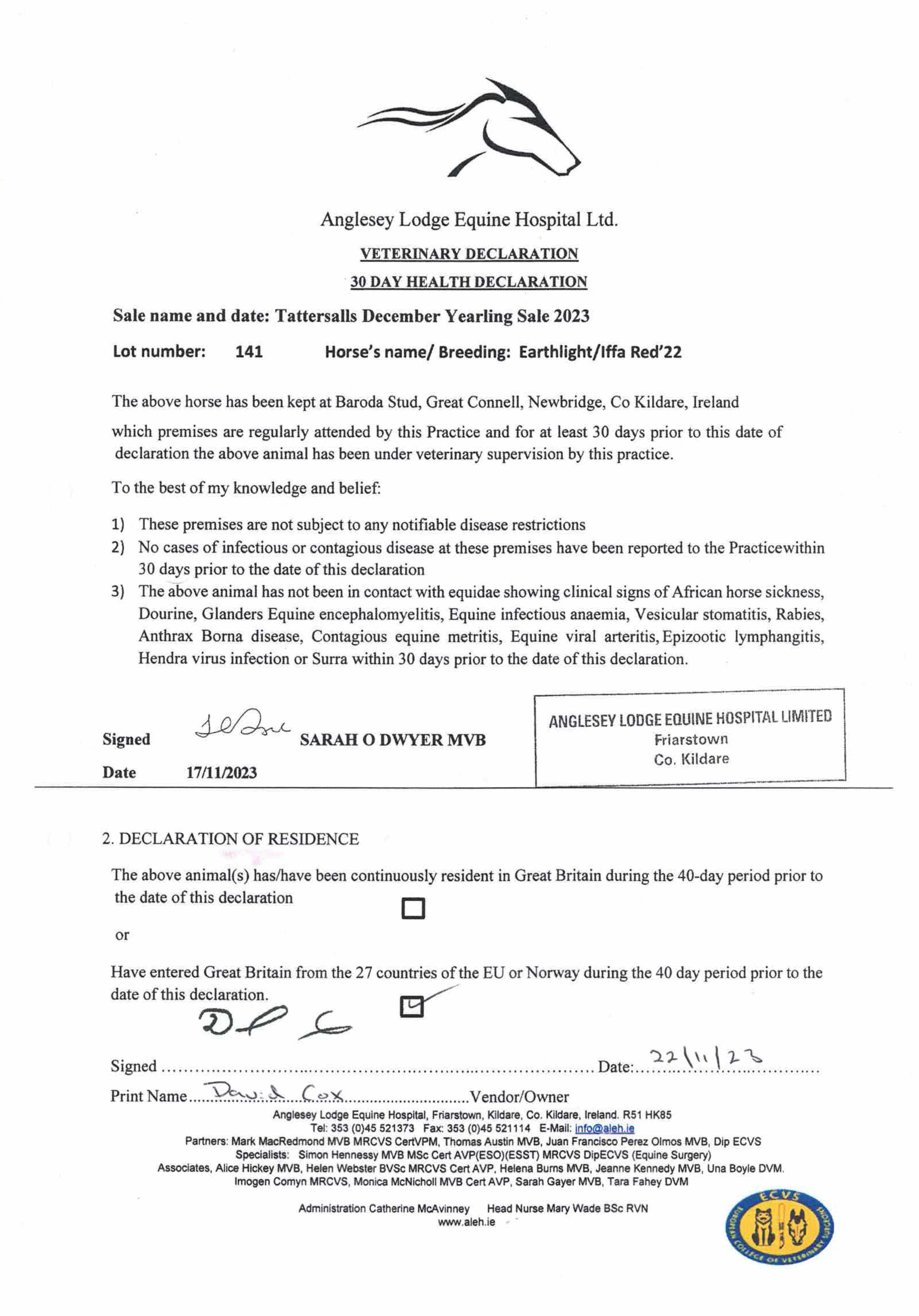 Consignor: Baroda Stud, Ireland