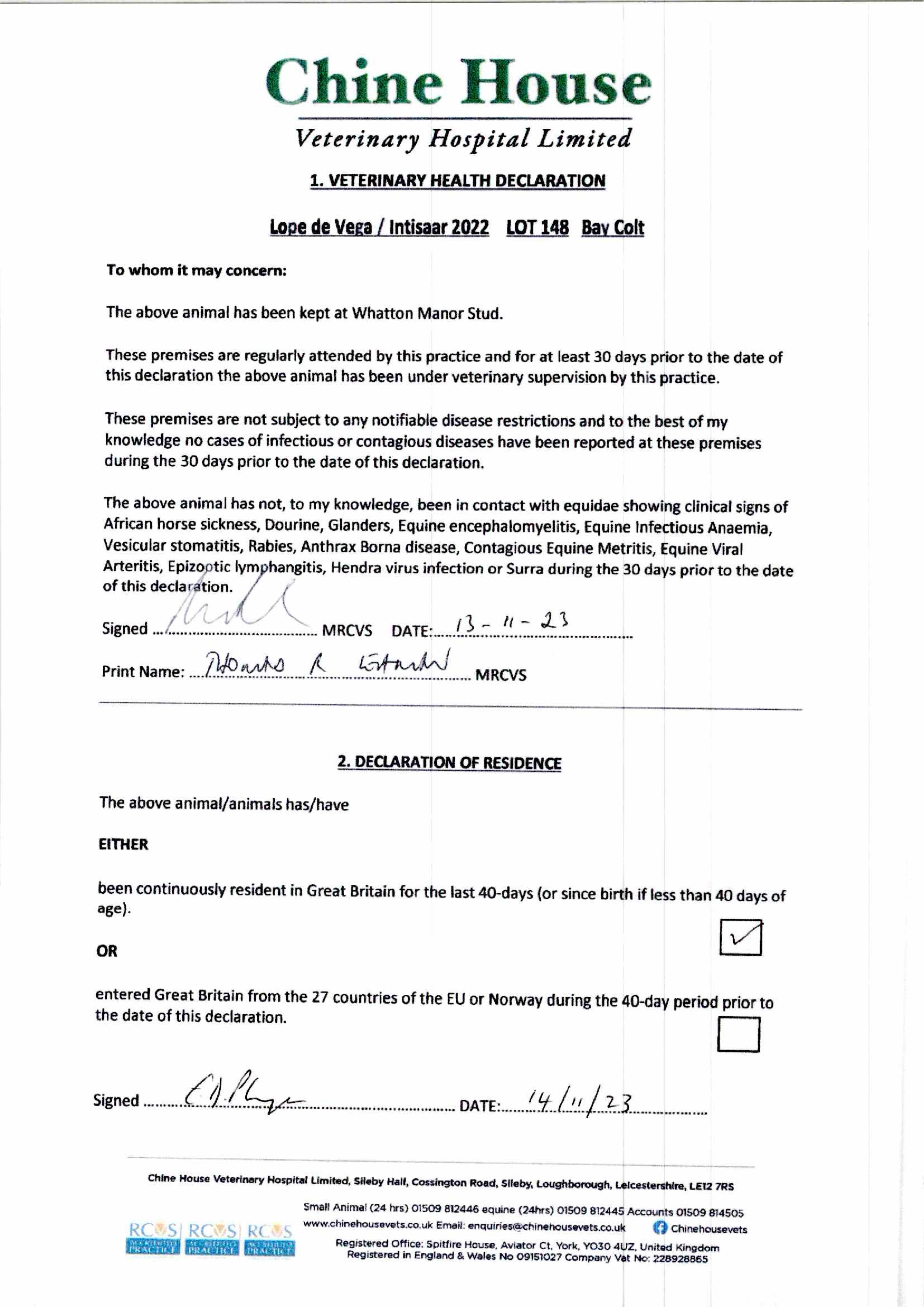 Consignor: Whatton Manor Stud