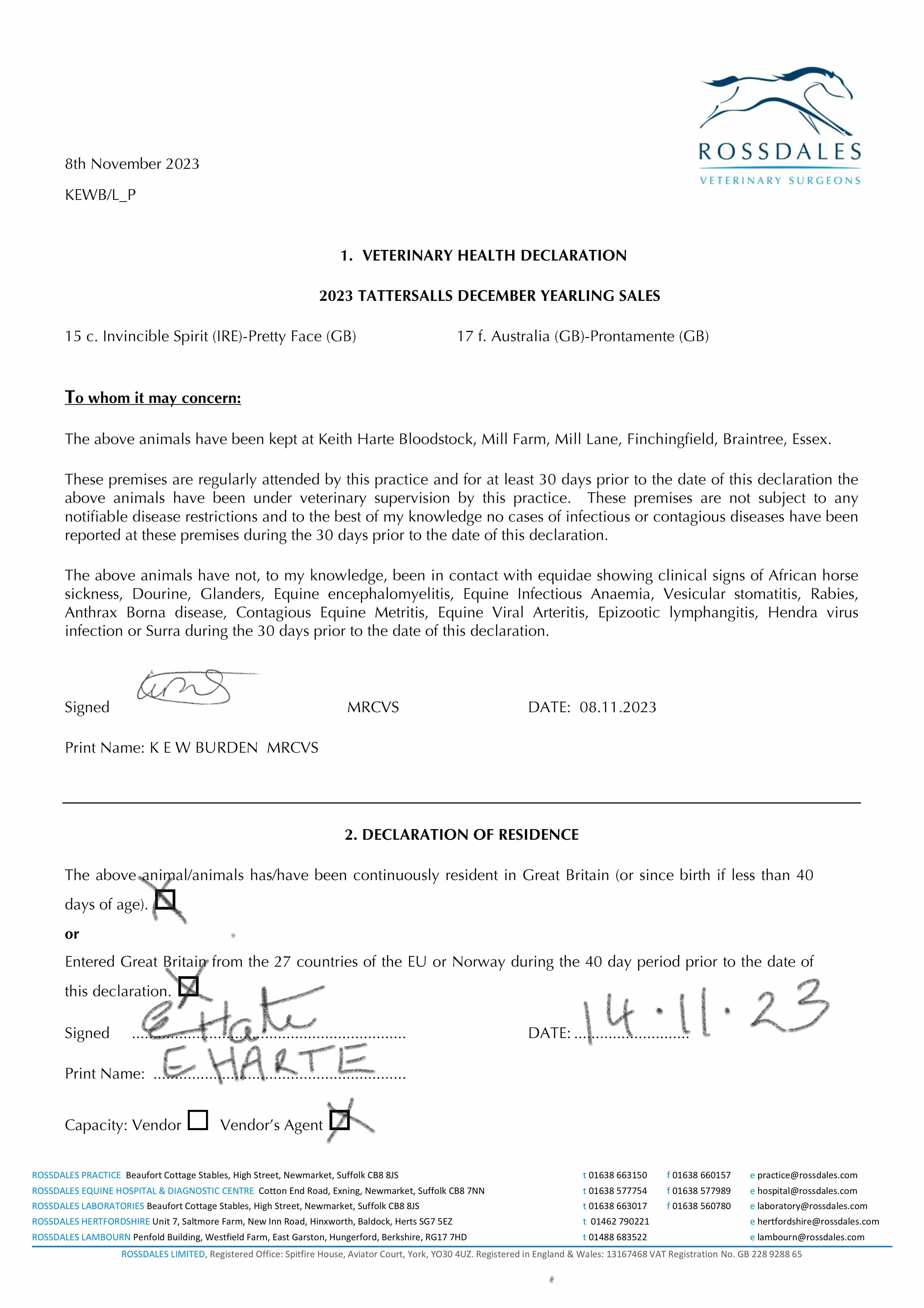 December Foal Sale 2022 lot 595, Keith Harte (Agent)=>Vendor 12,000 gns