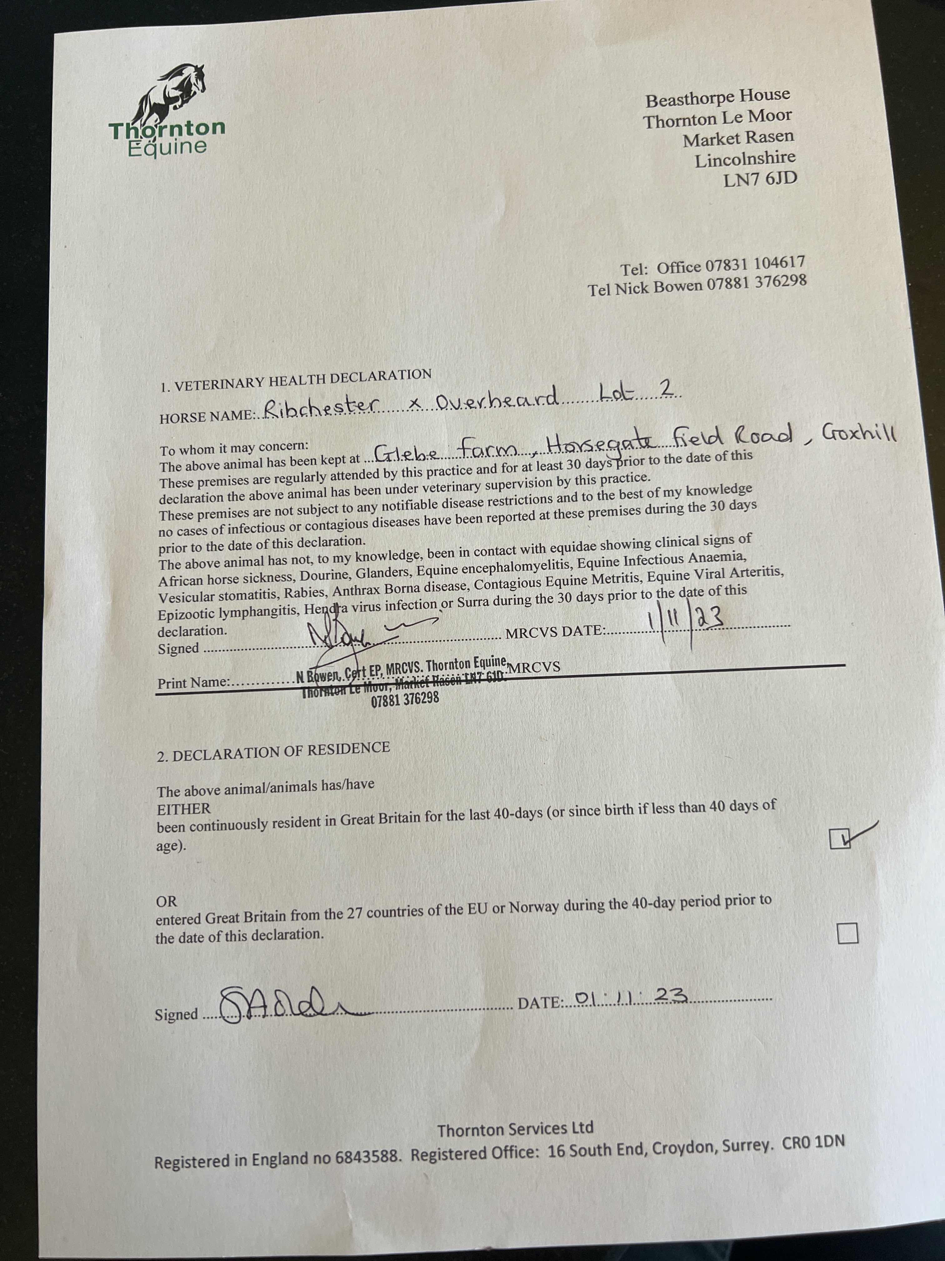 Consignor: Jamie Railton (Agent)