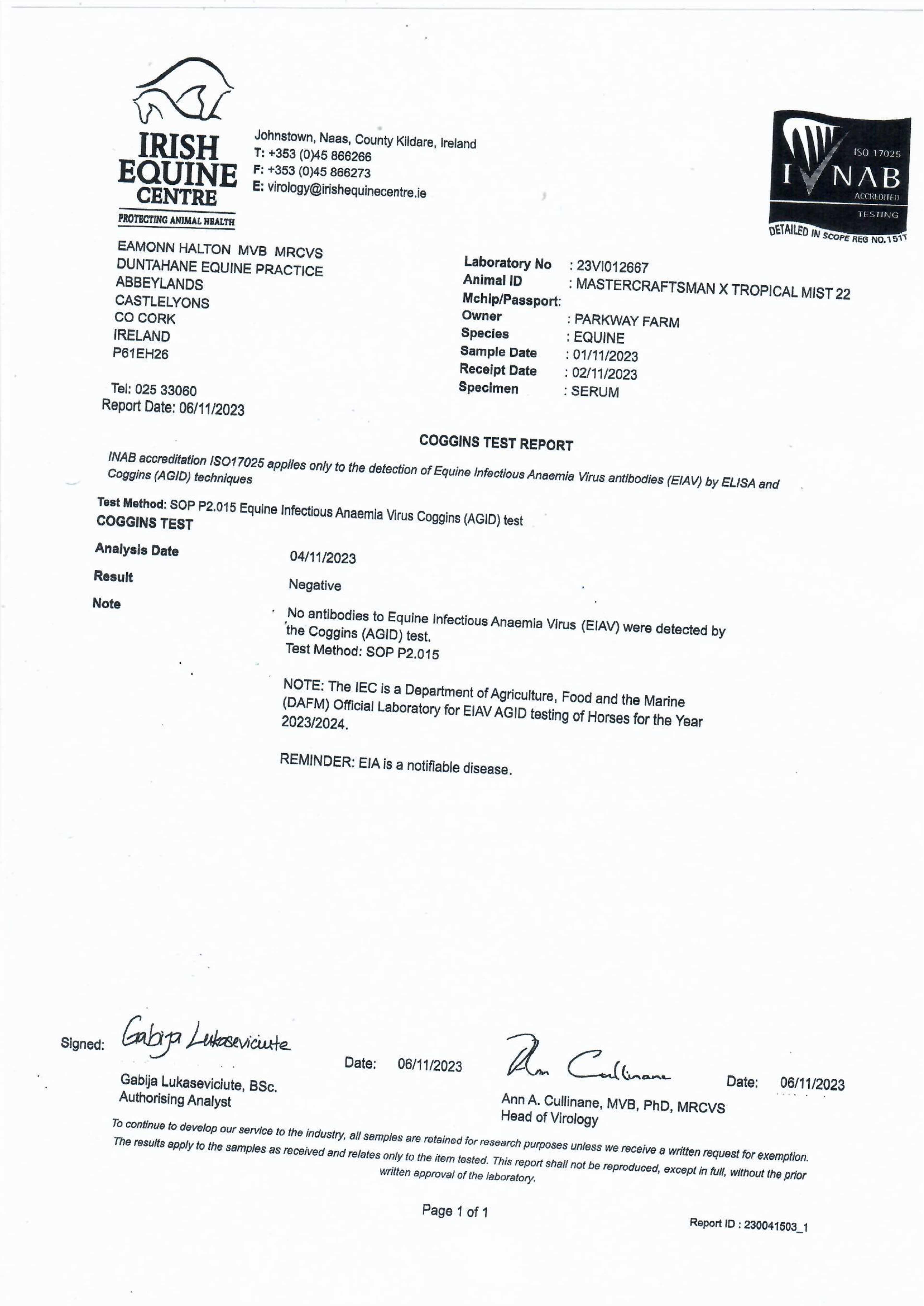 Consignor: Parkway Farm, Ireland