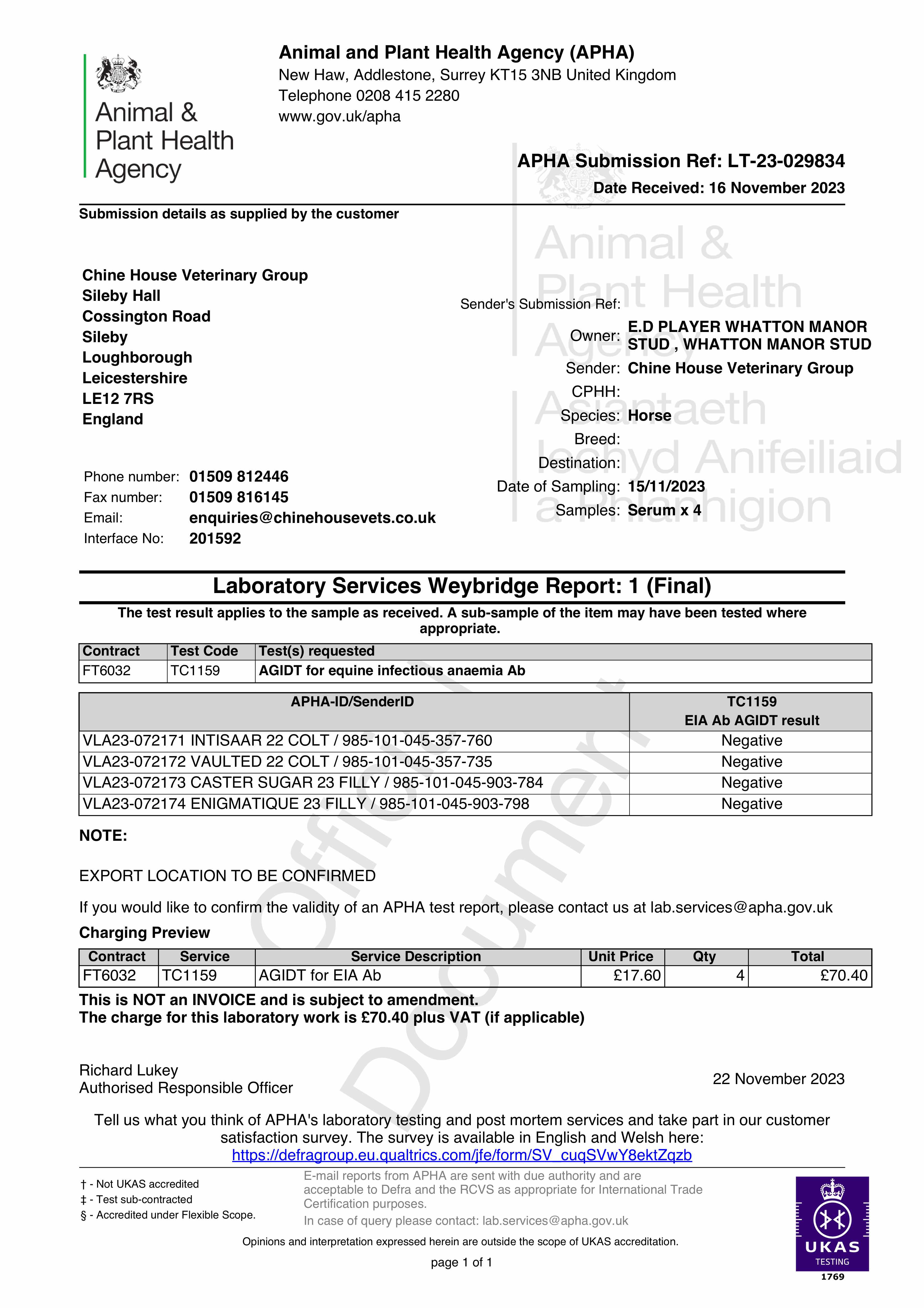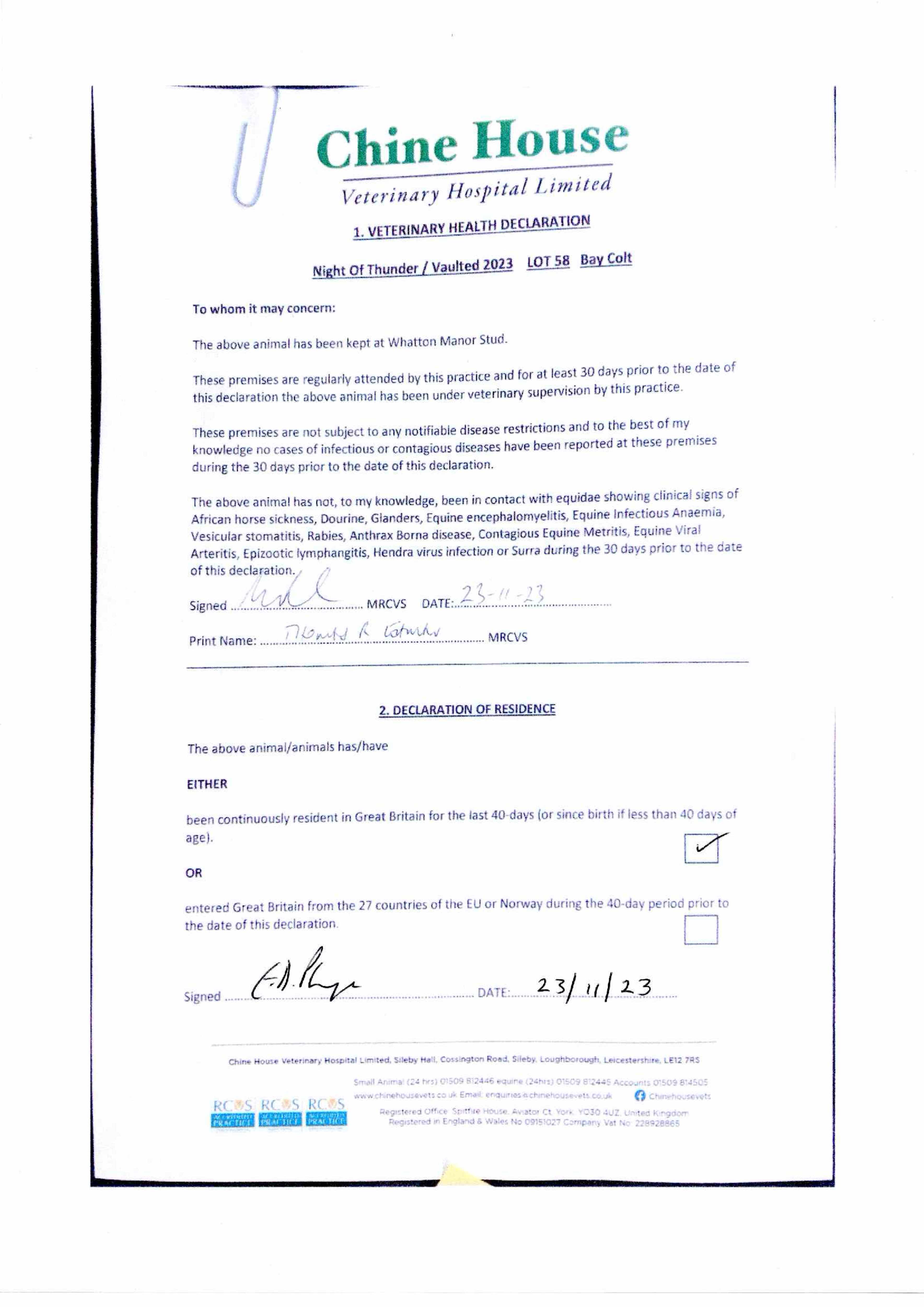Consignor: Whatton Manor Stud