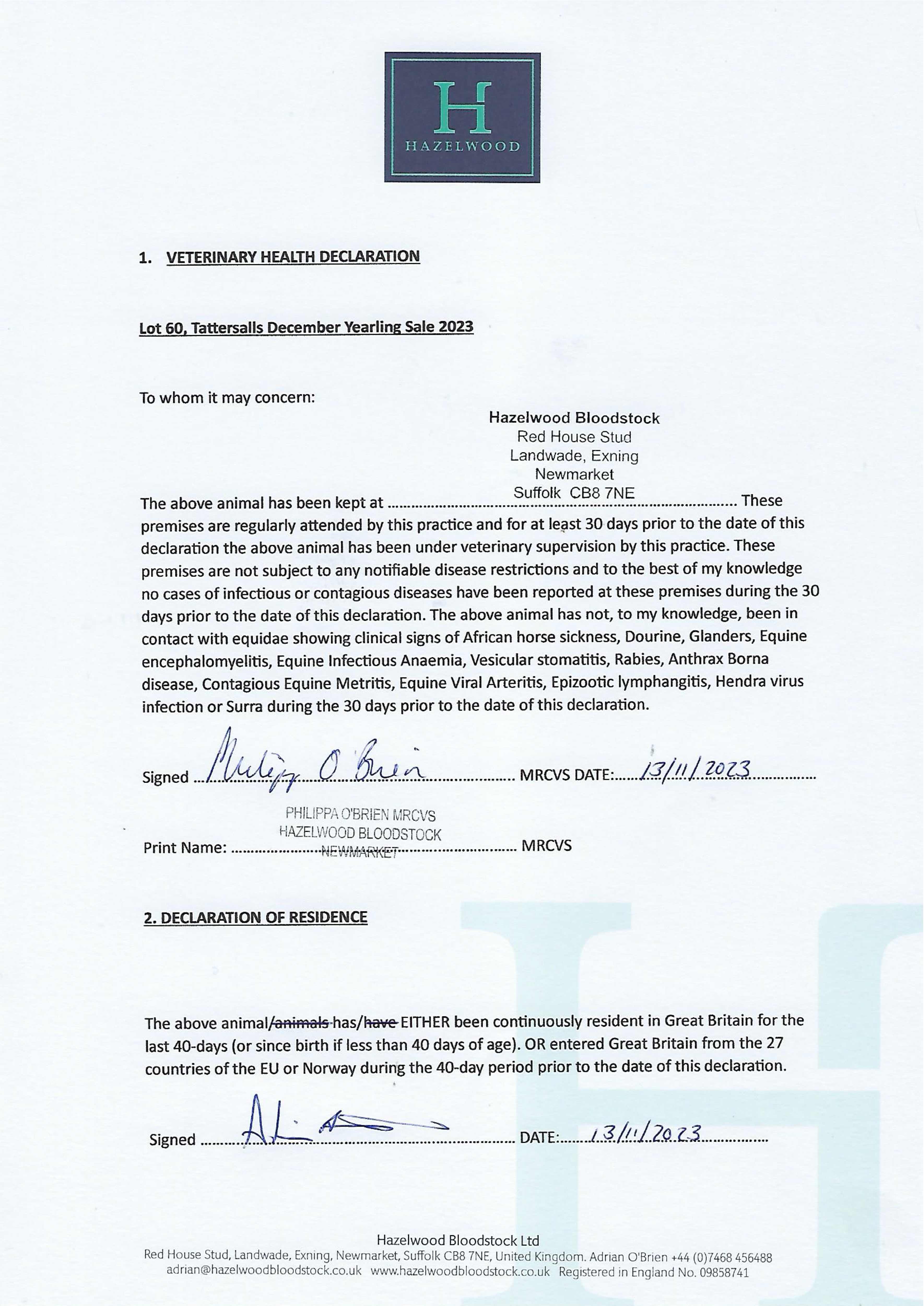 Consignor: Hazelwood Bloodstock