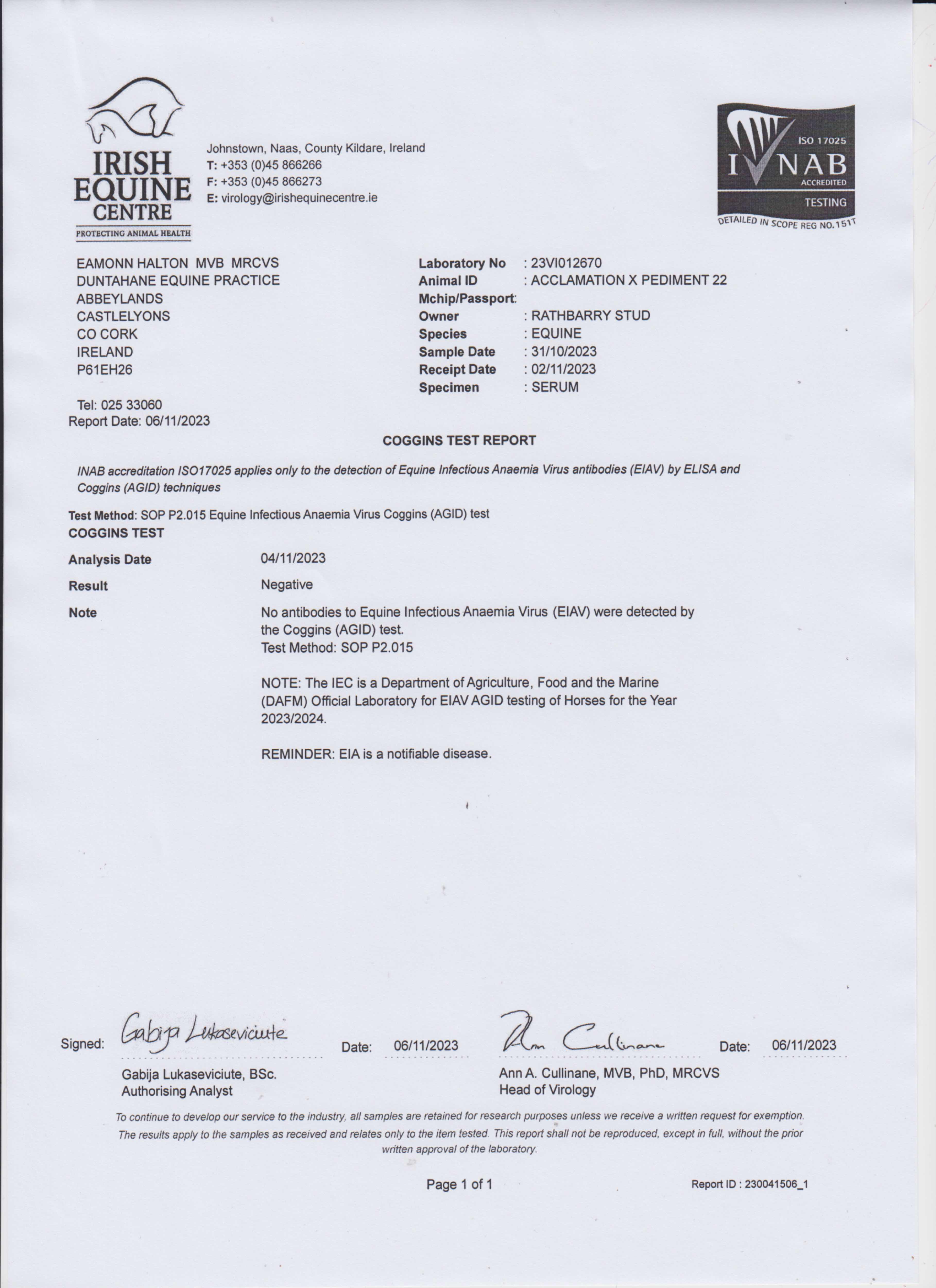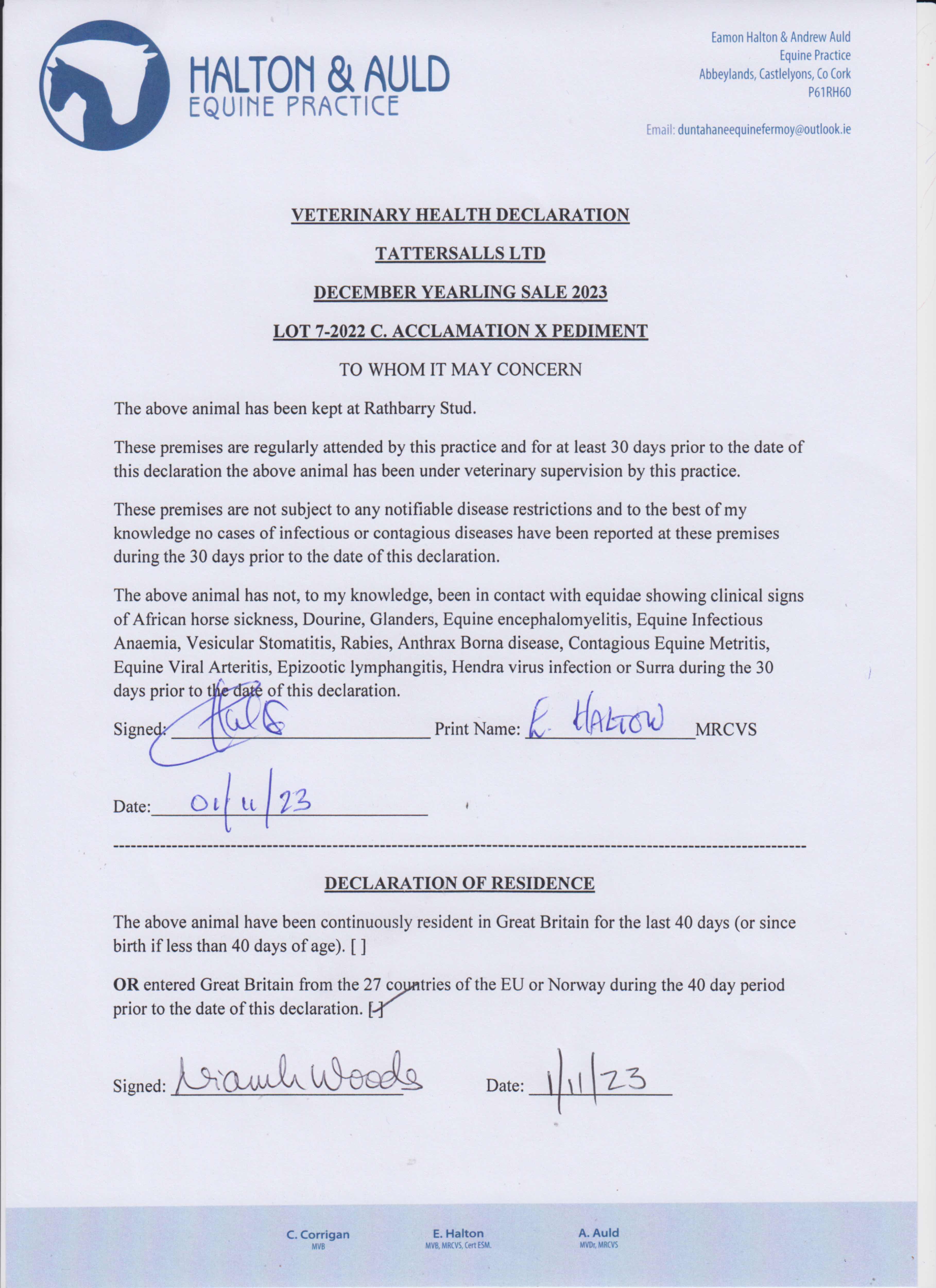 Consignor: Rathbarry Stud, Ireland (Agent)