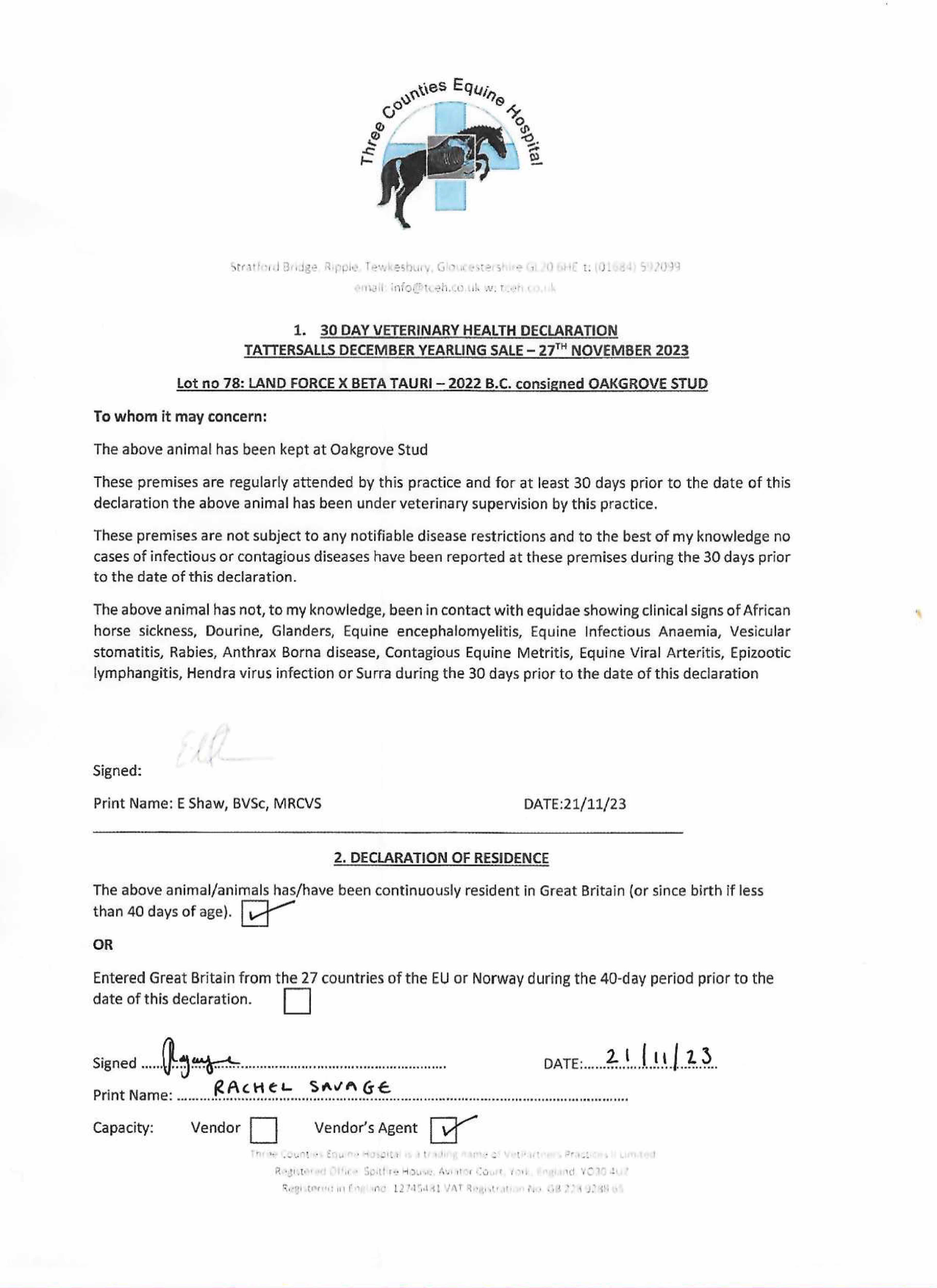 Consignor: Oakgrove Stud