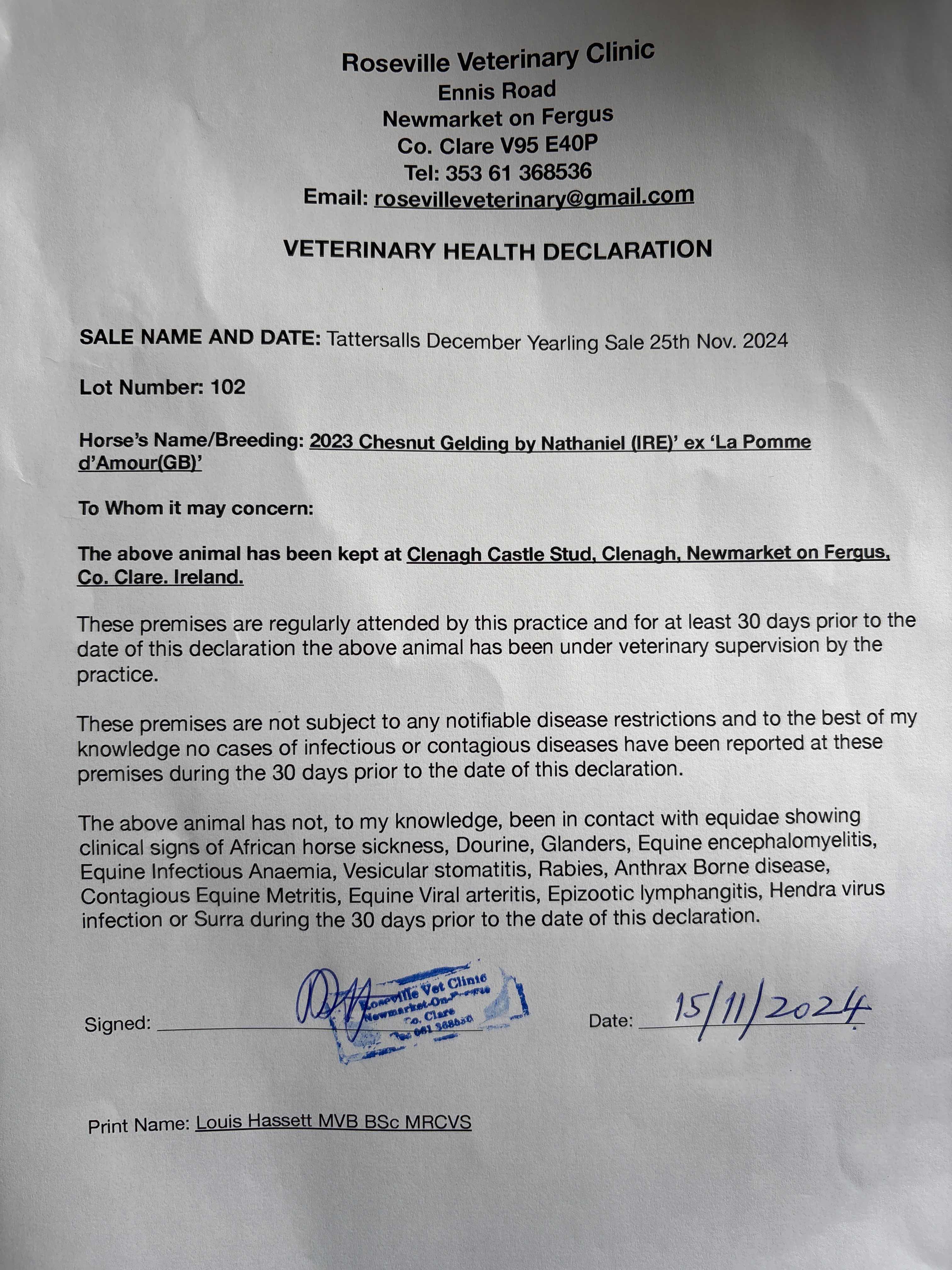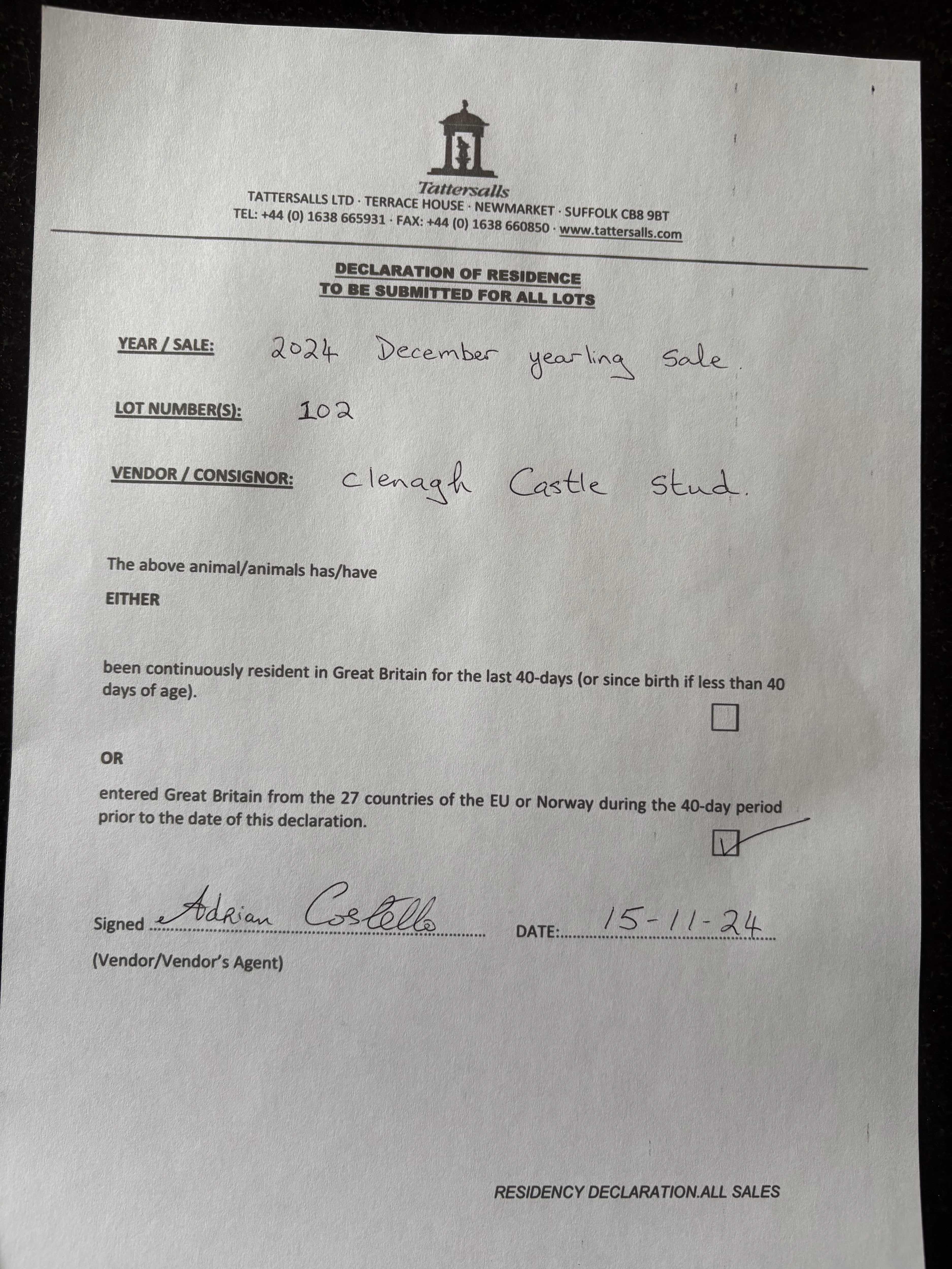Consignor: Clenagh Castle Stud, Ireland