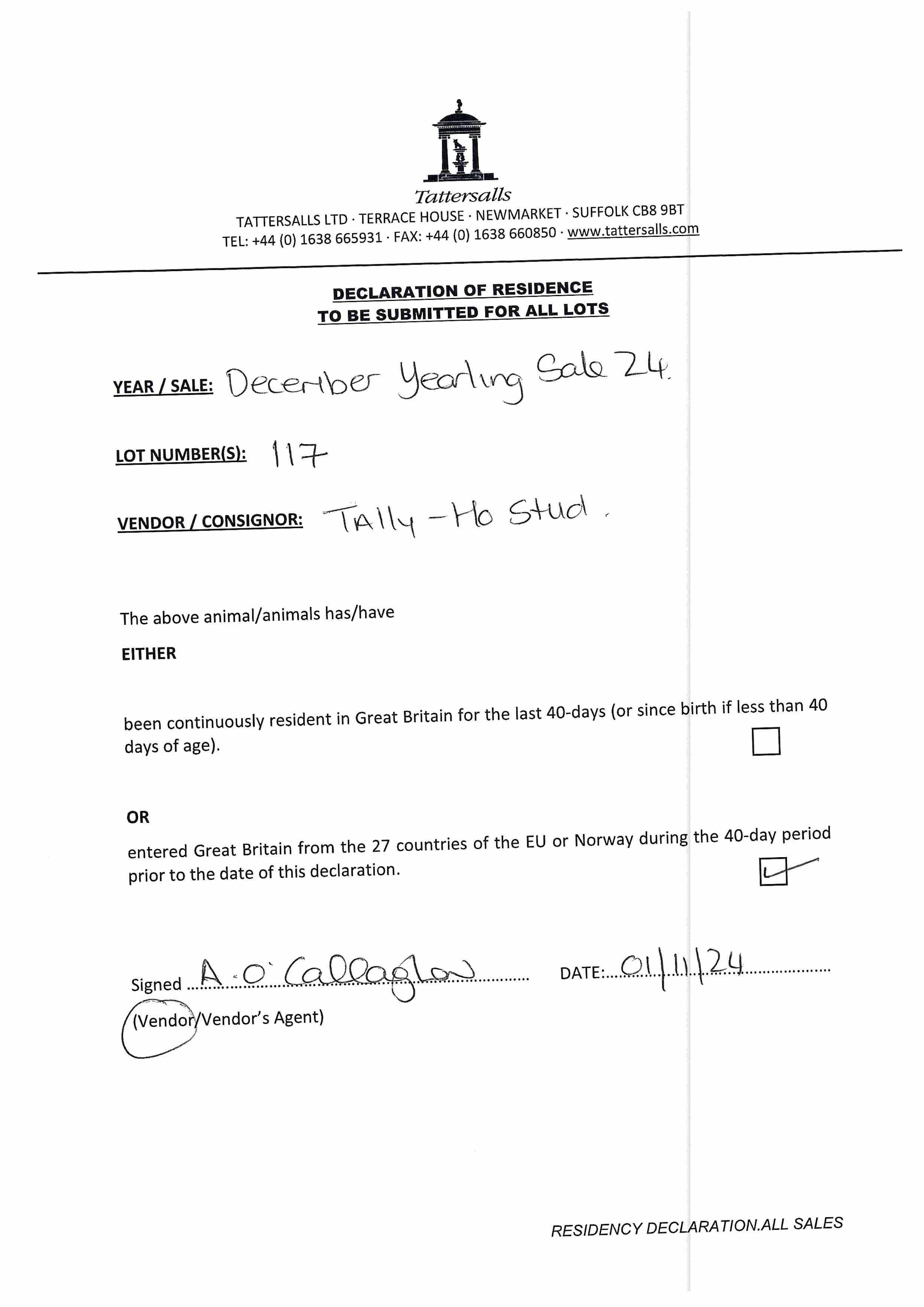 October Yearling Sale, Book 2 2025 lot 975 F. by Starman (GB) 2024, Tally-Ho Stud, Ireland=>Jason Kelly Bloodstock / Peter & Ross Doyle Bloodstock 75,000 gns
