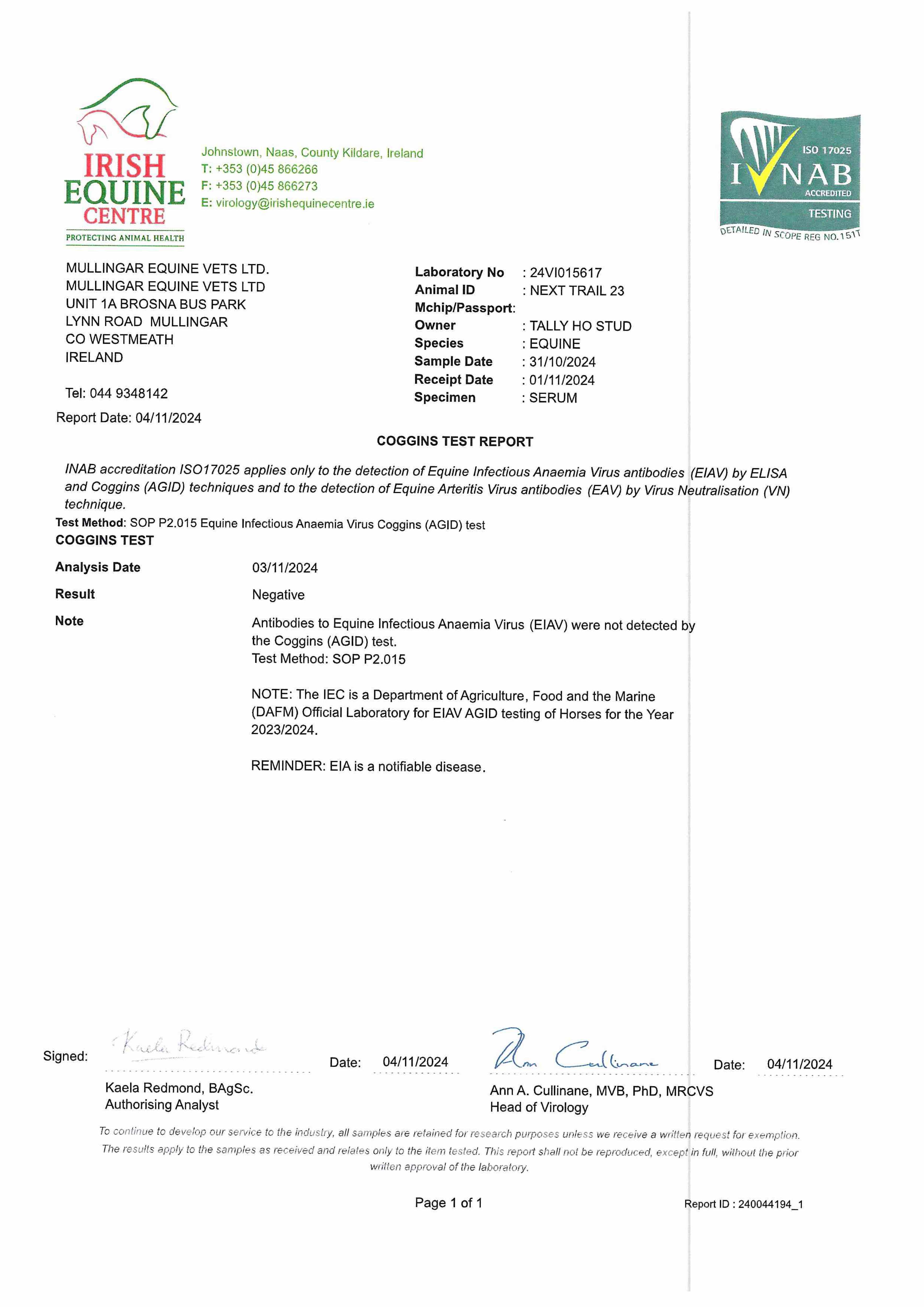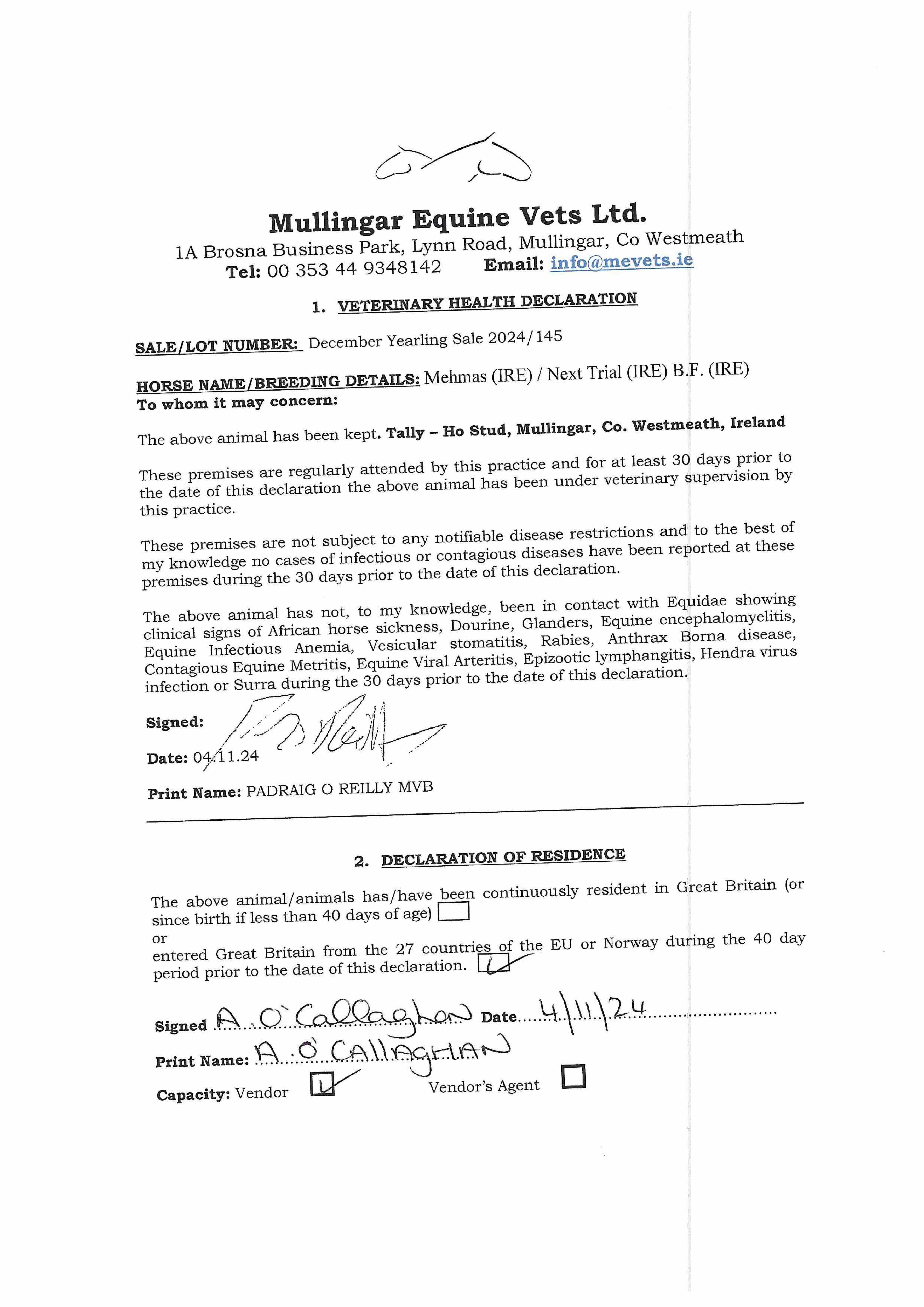 Consignor: Tally-Ho Stud, Ireland