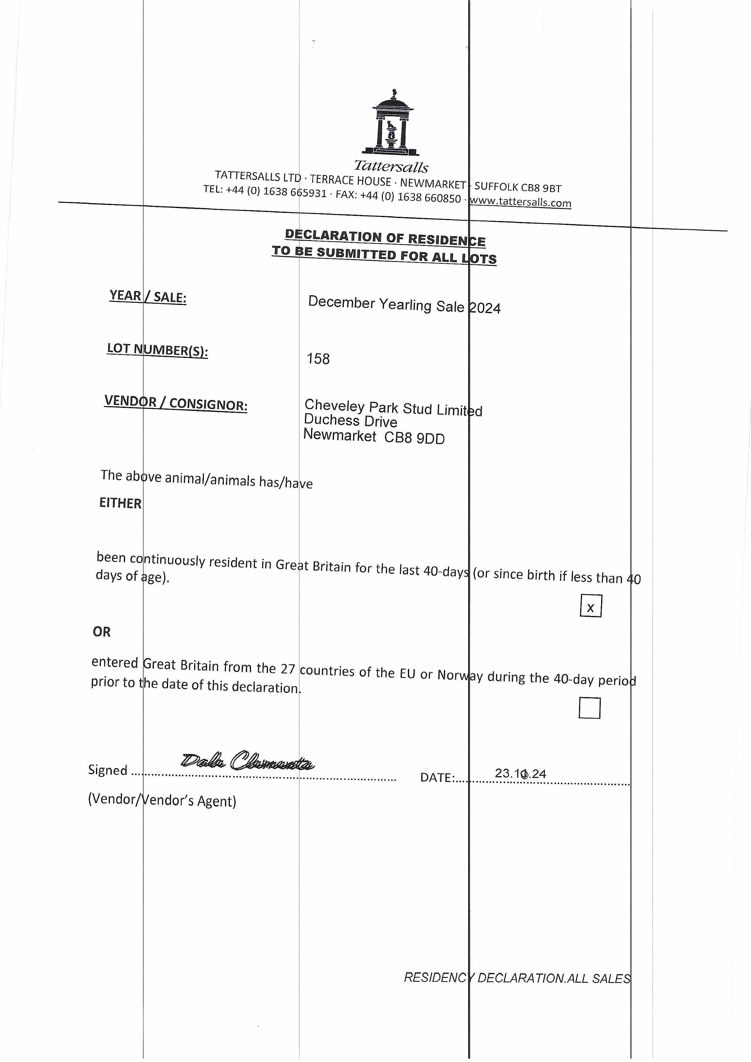 Consignor: Cheveley Park Stud Ltd.