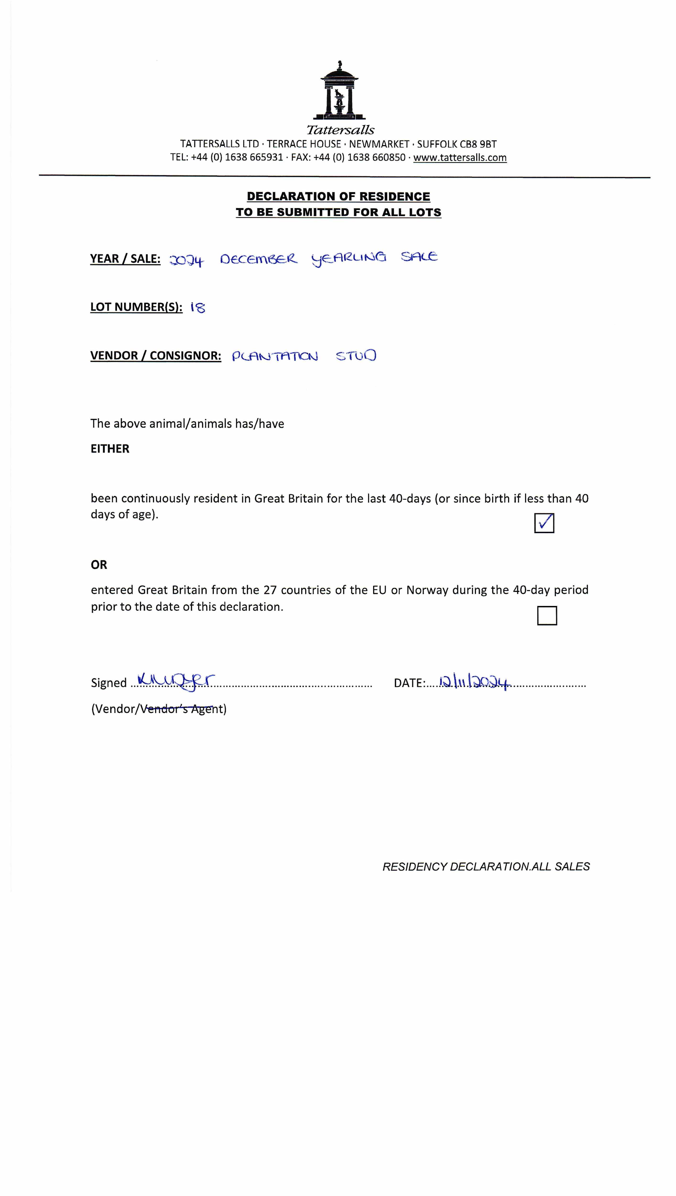 December Foal Sale 2025 lot 369 F. by Ardad (IRE) 2025, Plantation Stud=>DC Bloodstock 10,000 gns