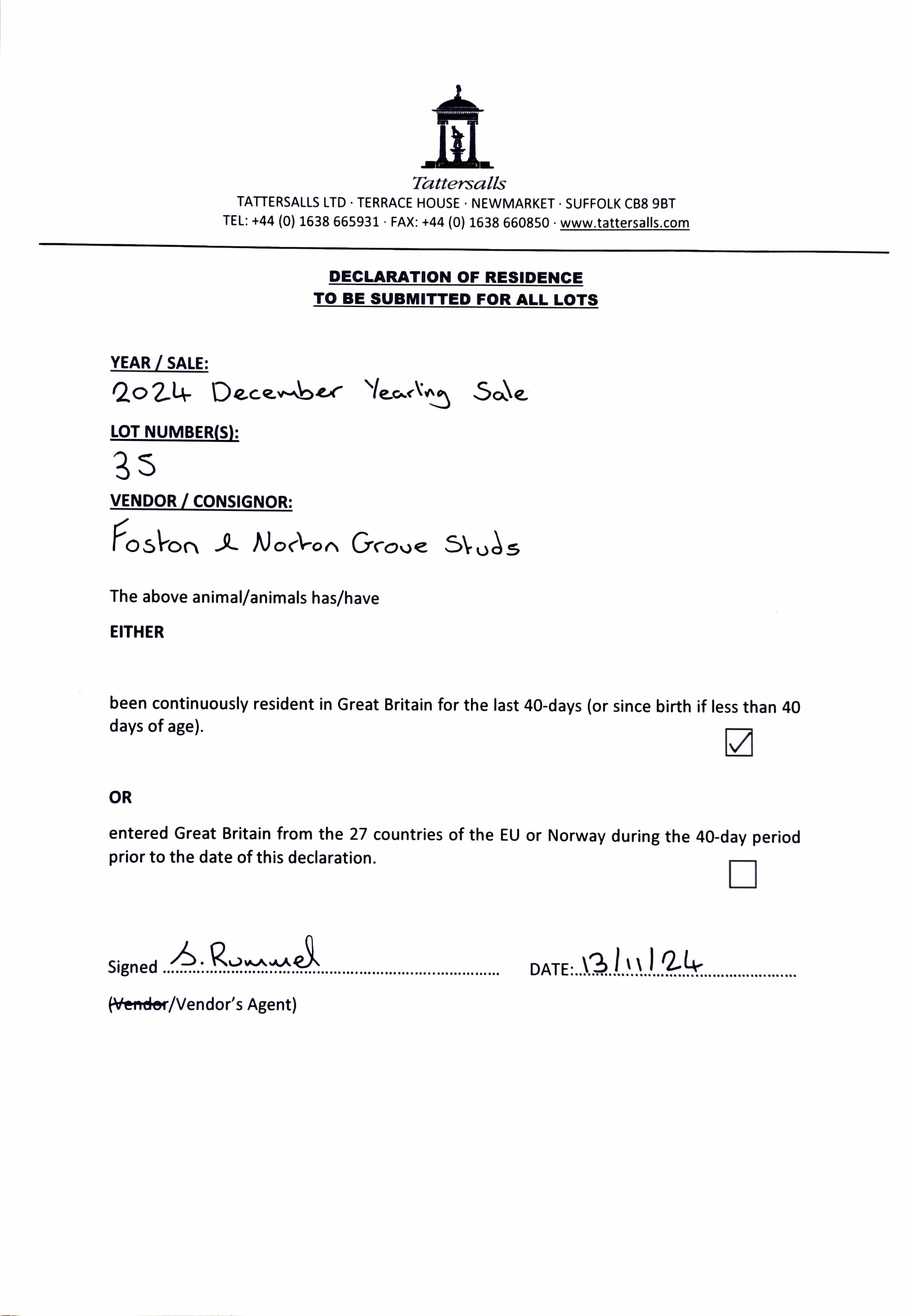 December Foal Sale 2023 lot 496, Foston Stud=>Vendor 30,000 gns