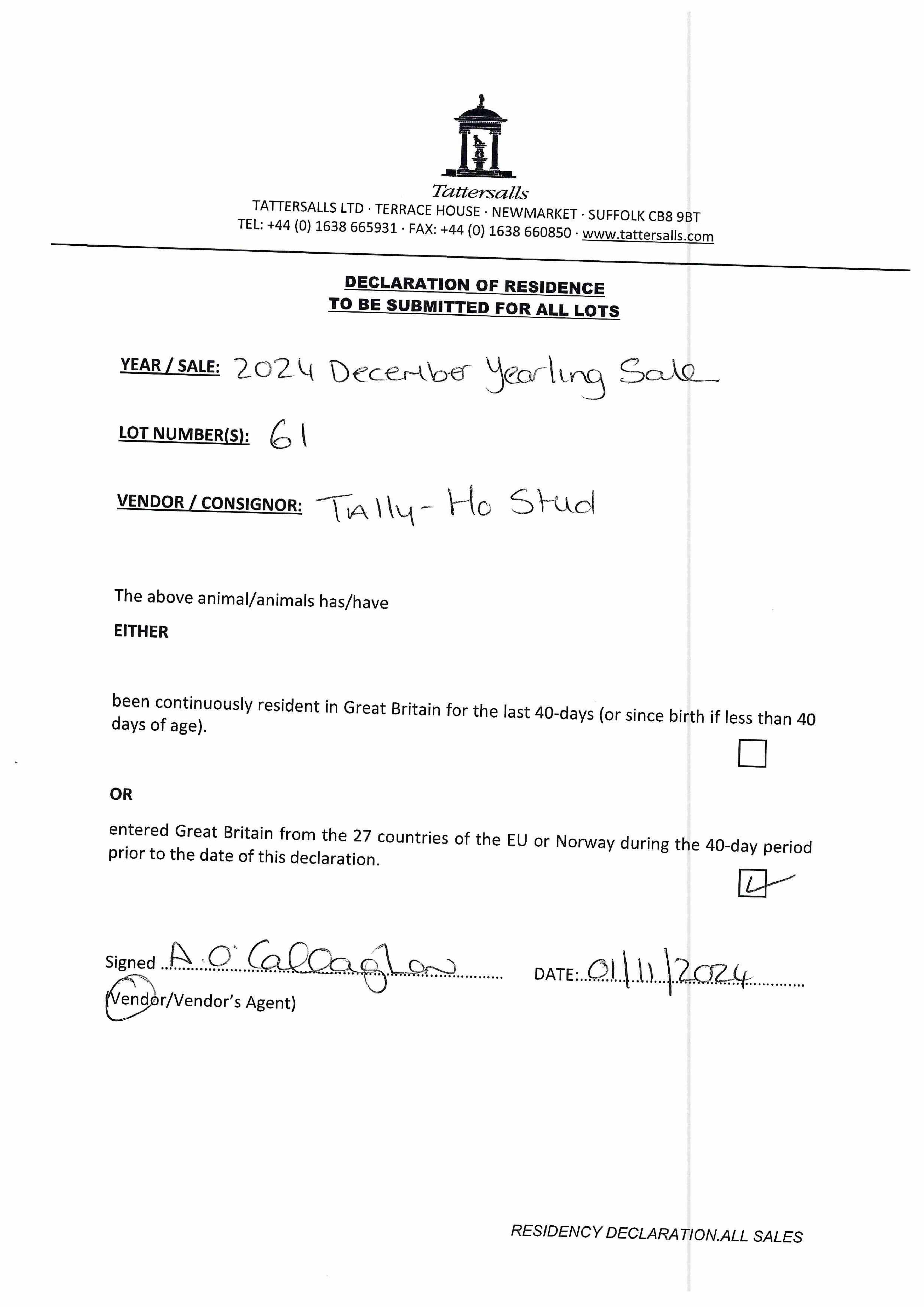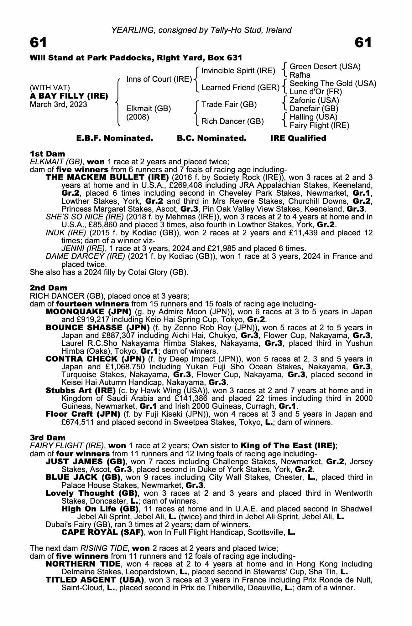 Somerville Yearling Sale 2025 lot 271 F. by Cotai Glory (GB) 2024, Tally-Ho Stud, Ireland=>Highflyer Bloodstock / Phil Cunningham 100,000 gns