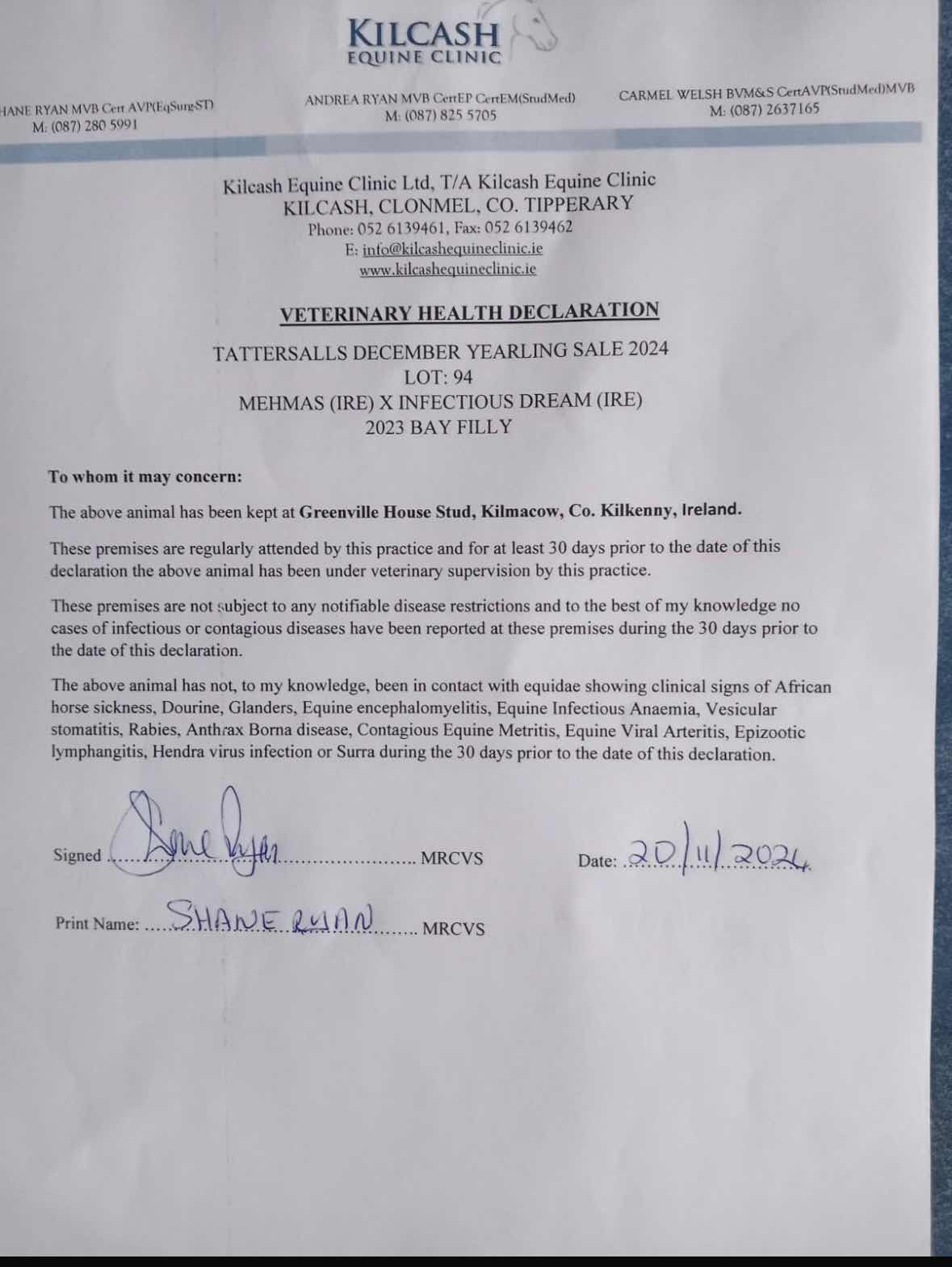 December Foal Sale 2022 lot 633 F. by Far Above (IRE) 2022, Greenville House Stud, Ireland=>Blandford Bloodstock 52,000 gns