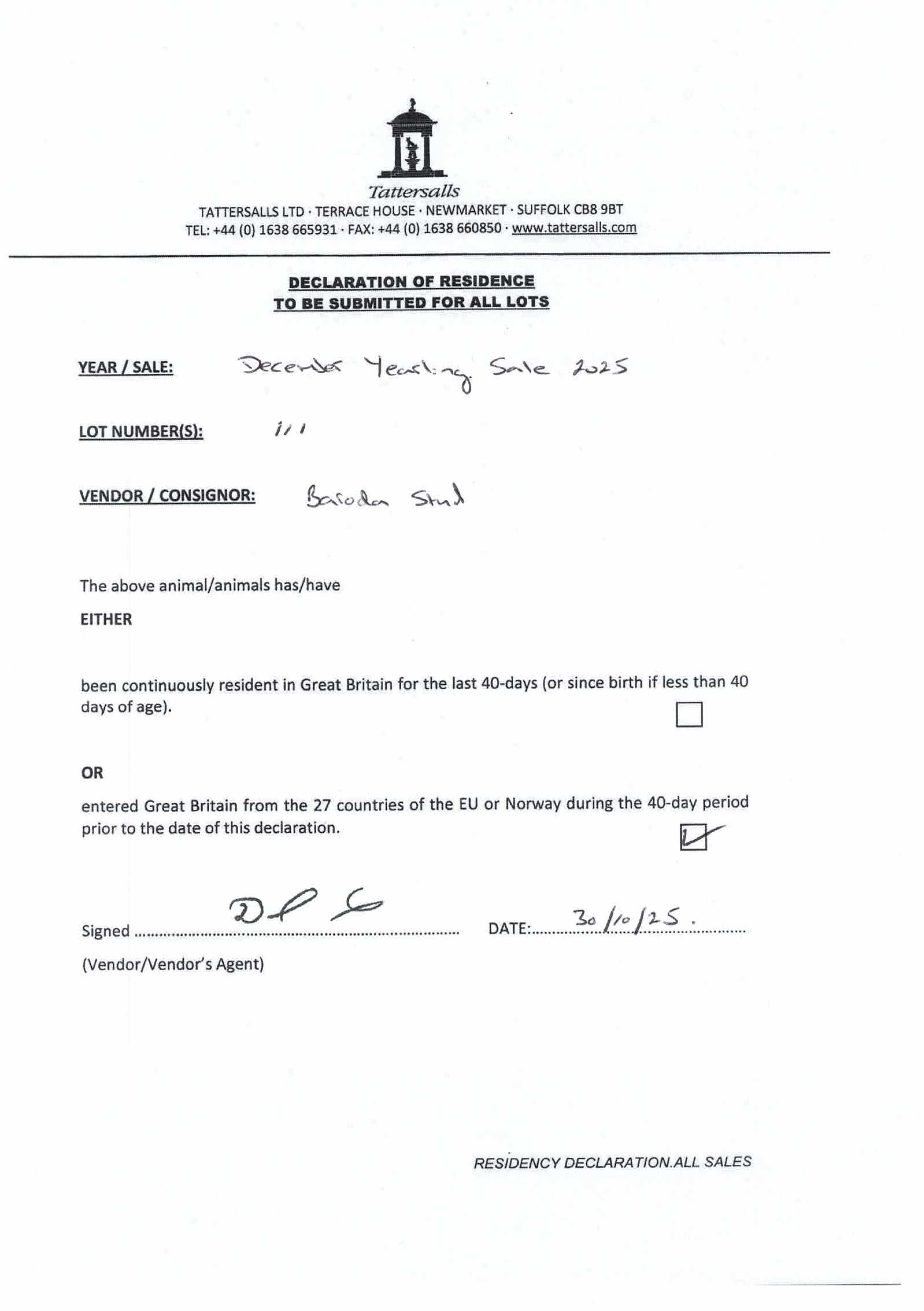 Consignor: Baroda Stud, Ireland