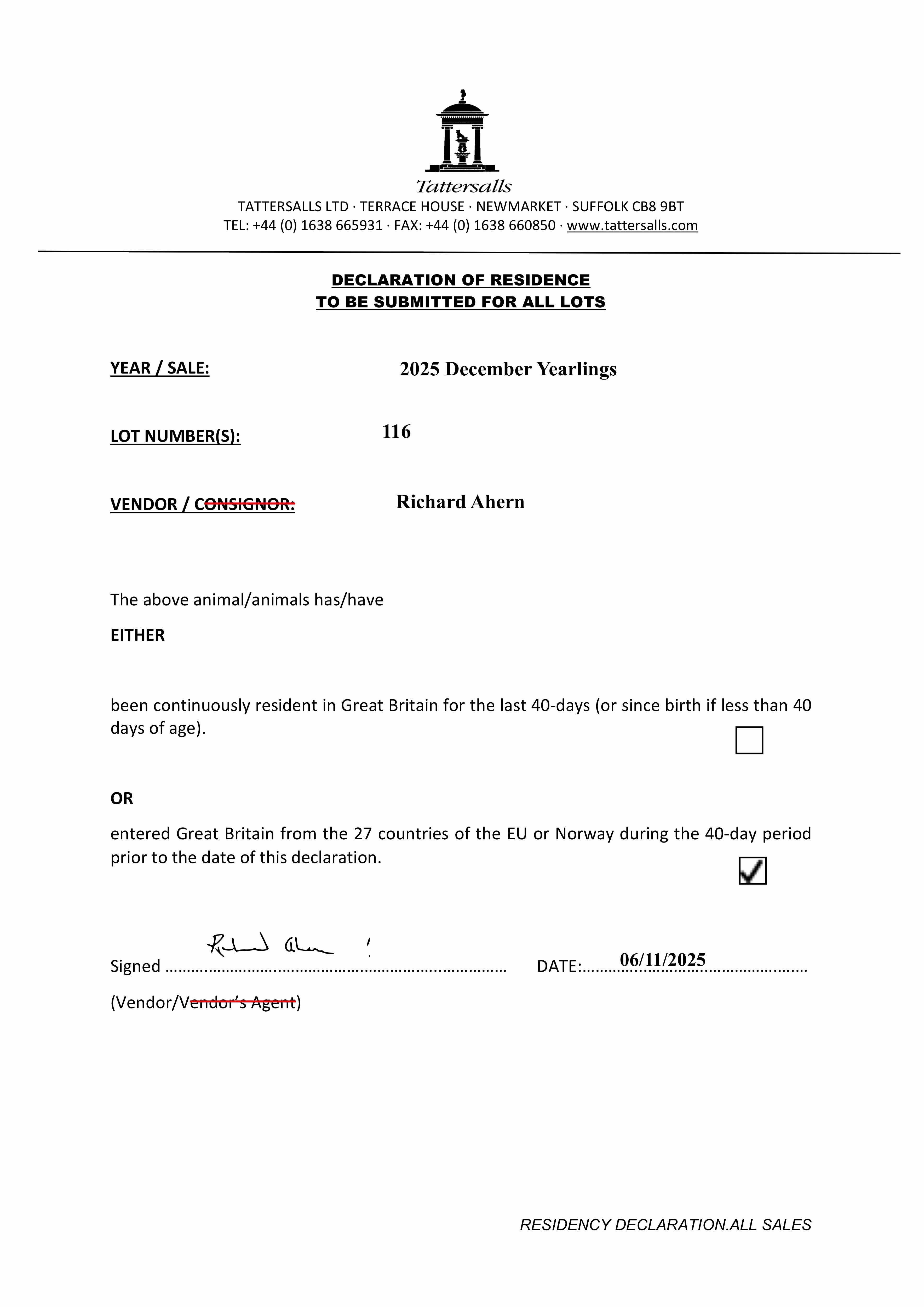 Consignor: Mr Richard Ahern