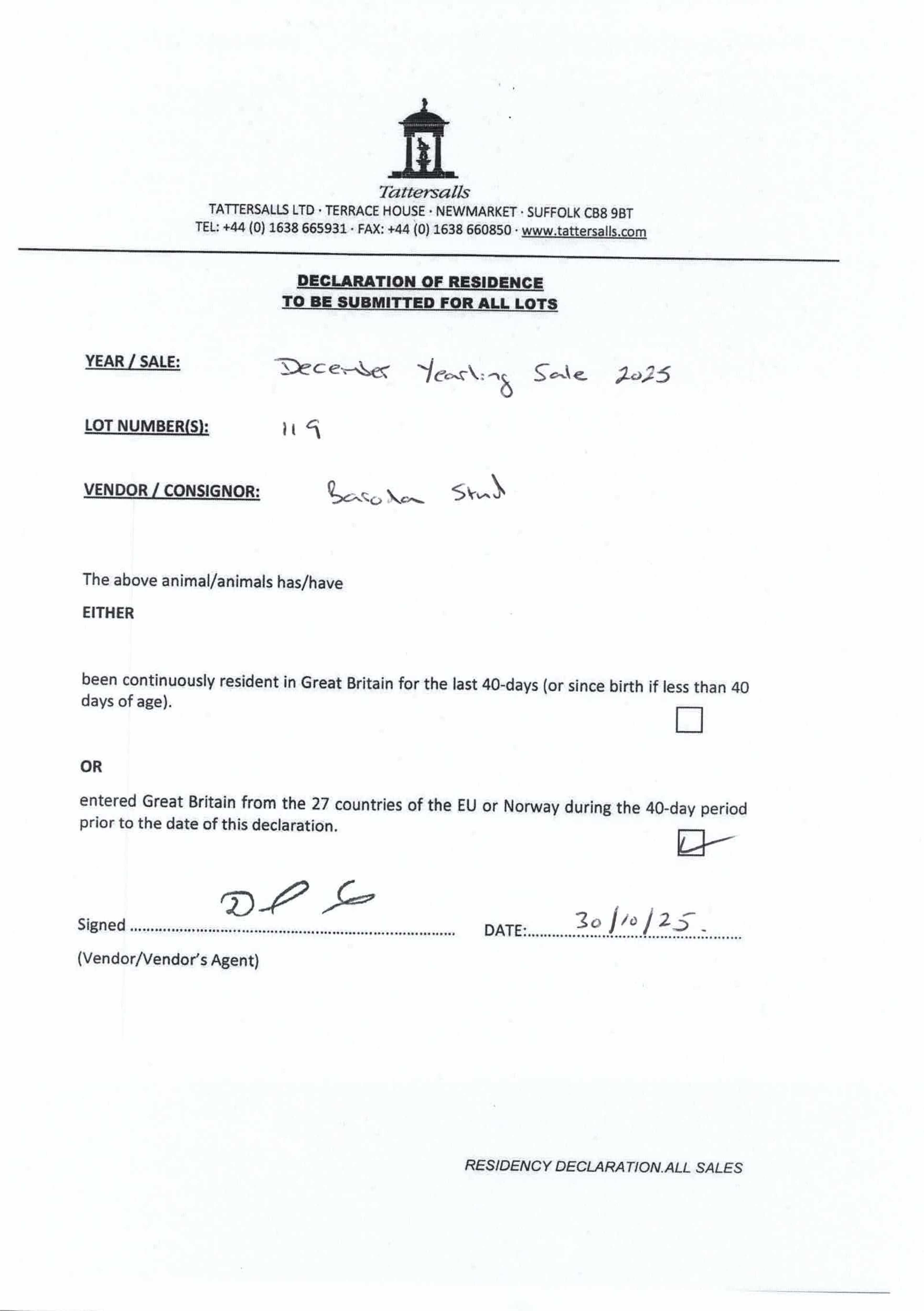 Consignor: Baroda Stud, Ireland