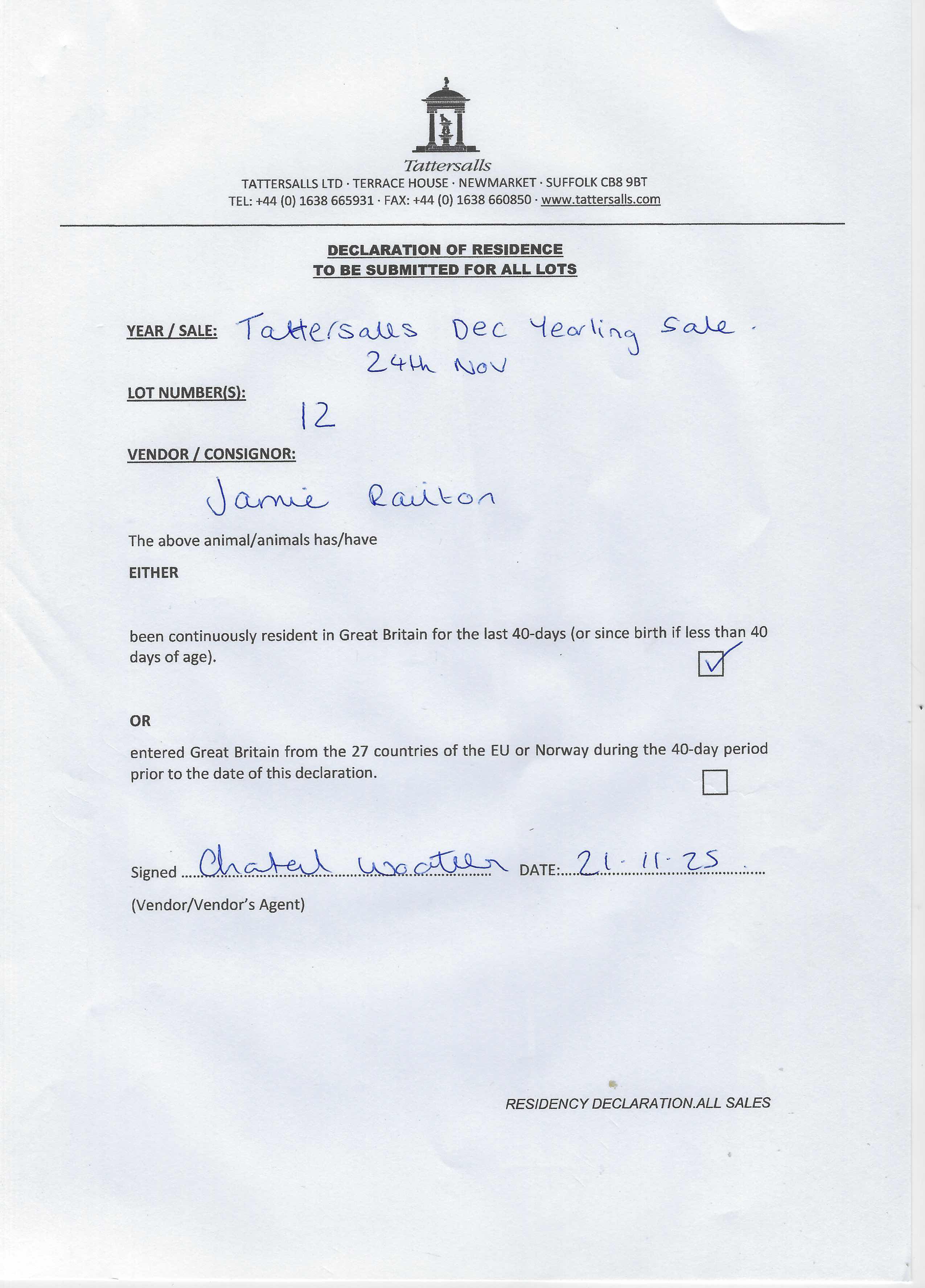 Consignor: Jamie Railton (Agent)