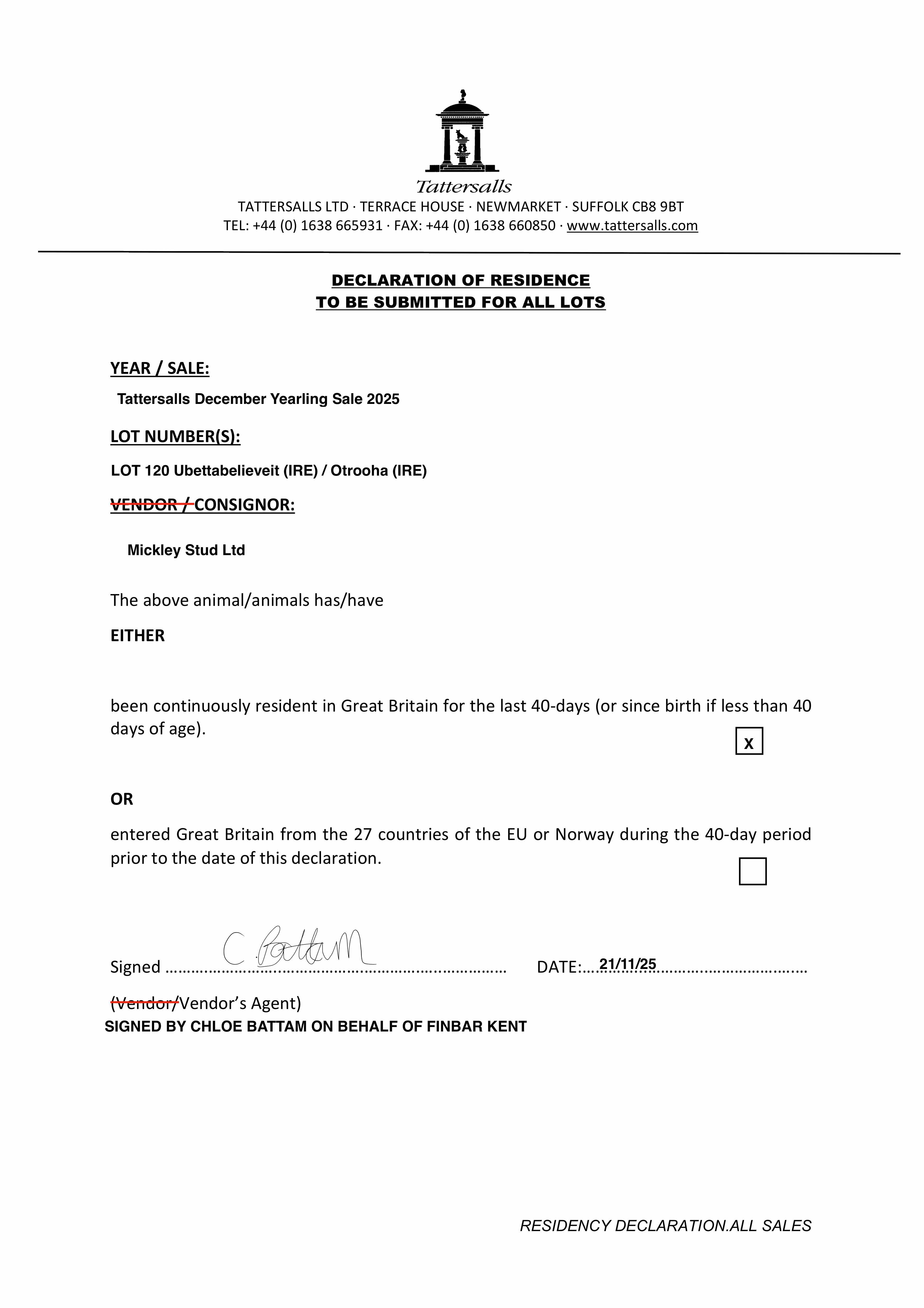 Consignor: Mickley Stud Ltd.
