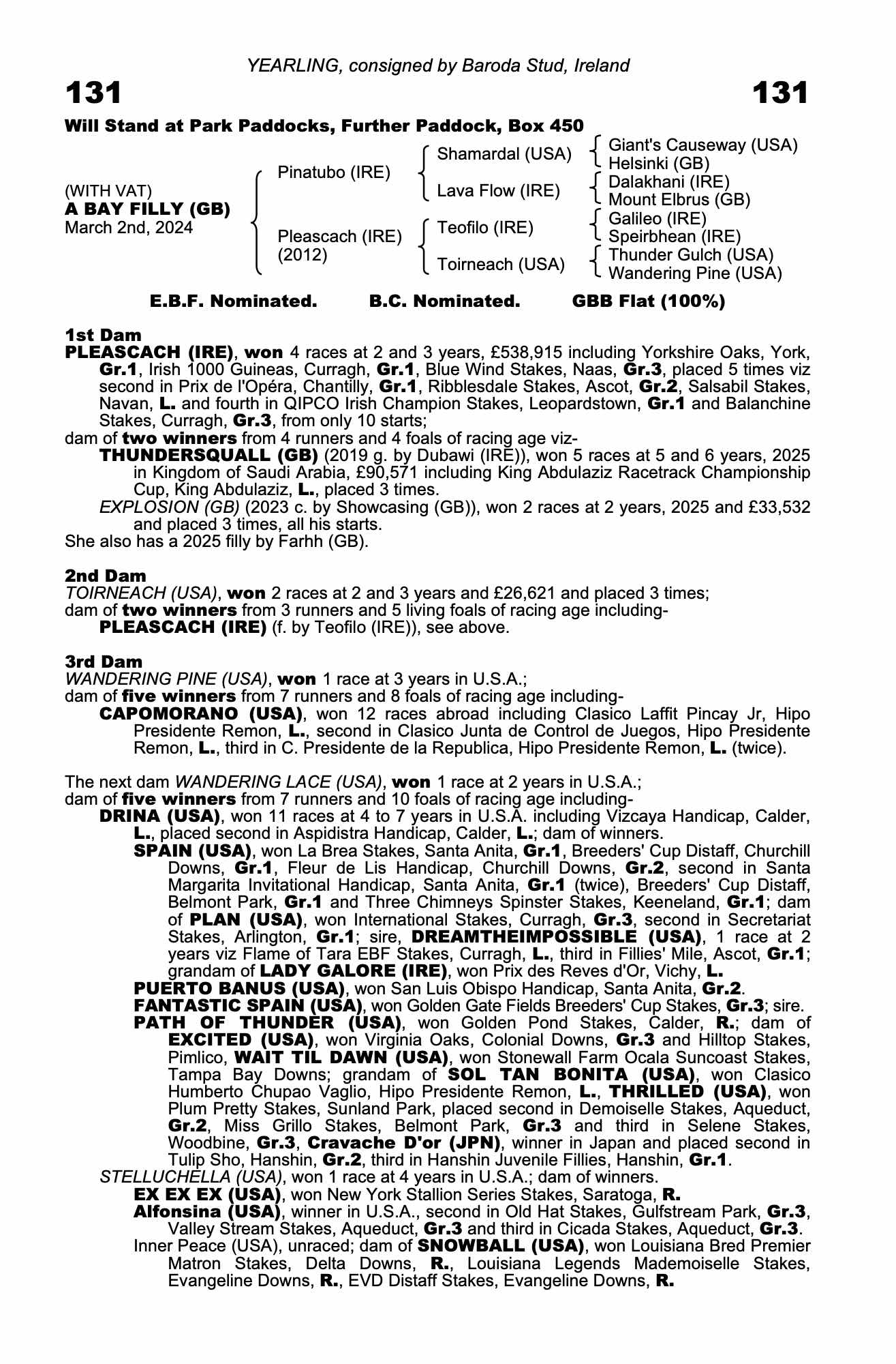 Half brother: THUNDERSQUALL (GB) (2019 g. by Dubawi (IRE)), placed 4 times, £94,401.