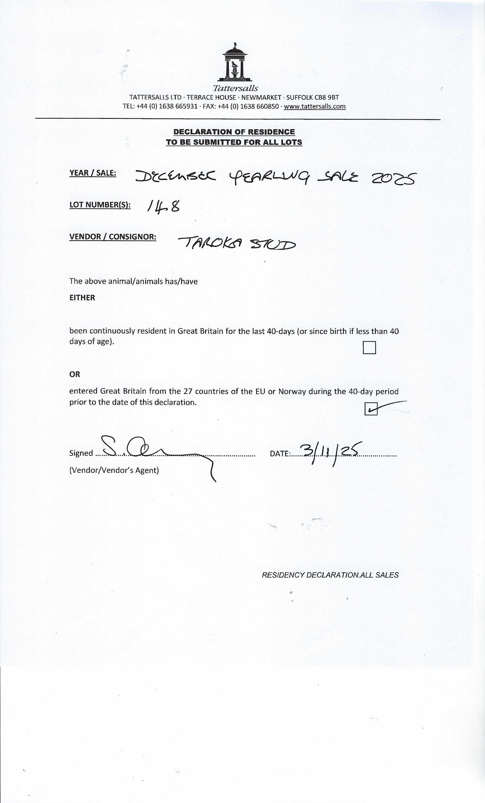 September Yearling Sale Part II 2024 lot 704 F. by Ten Sovereigns (IRE) 2023, Taroka Stud=>Stefano Botti Turf €2,000