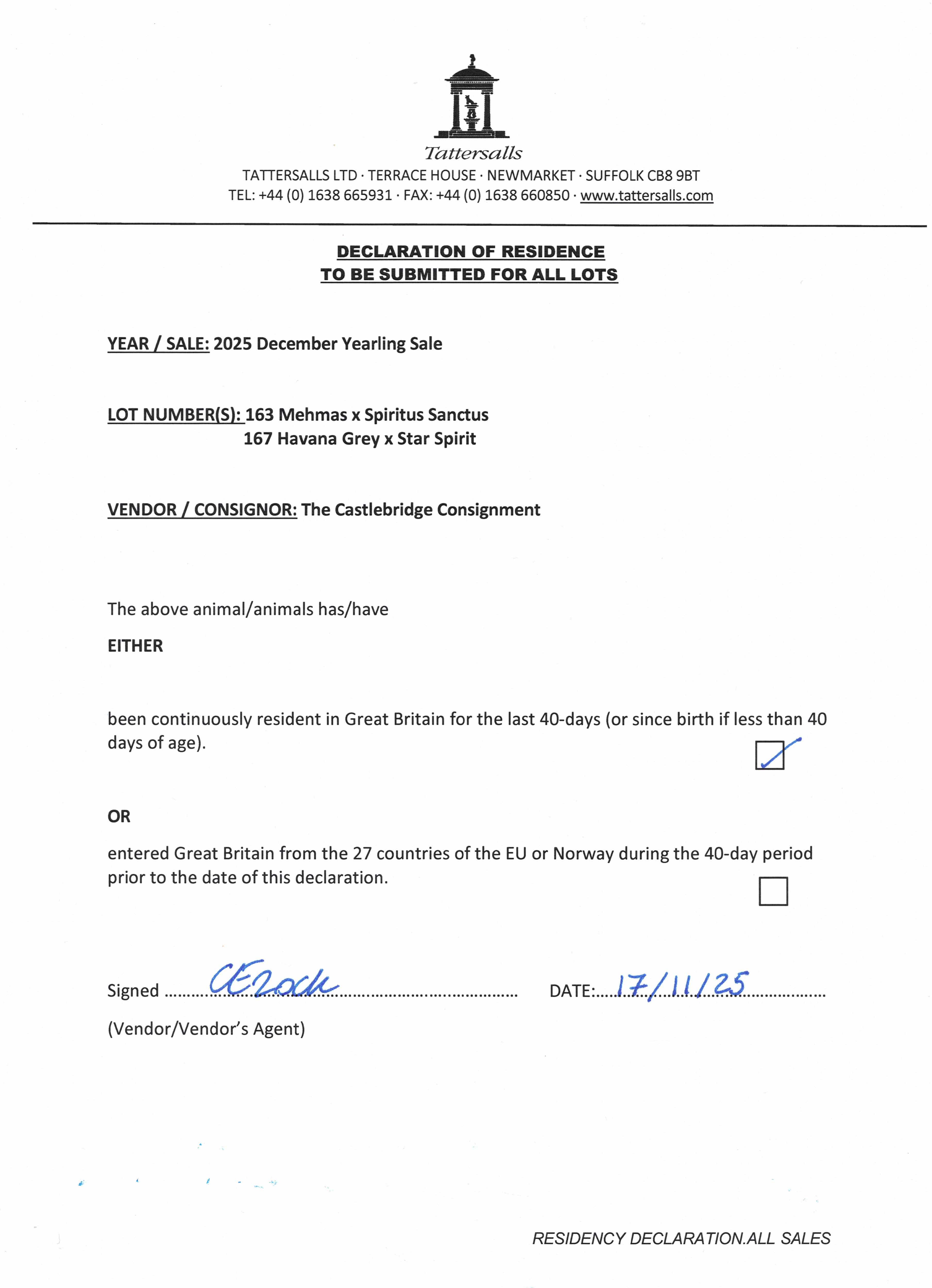 Lot 167 Havana Grey (GB) /Star Spirit (GB) B.F. (GB)