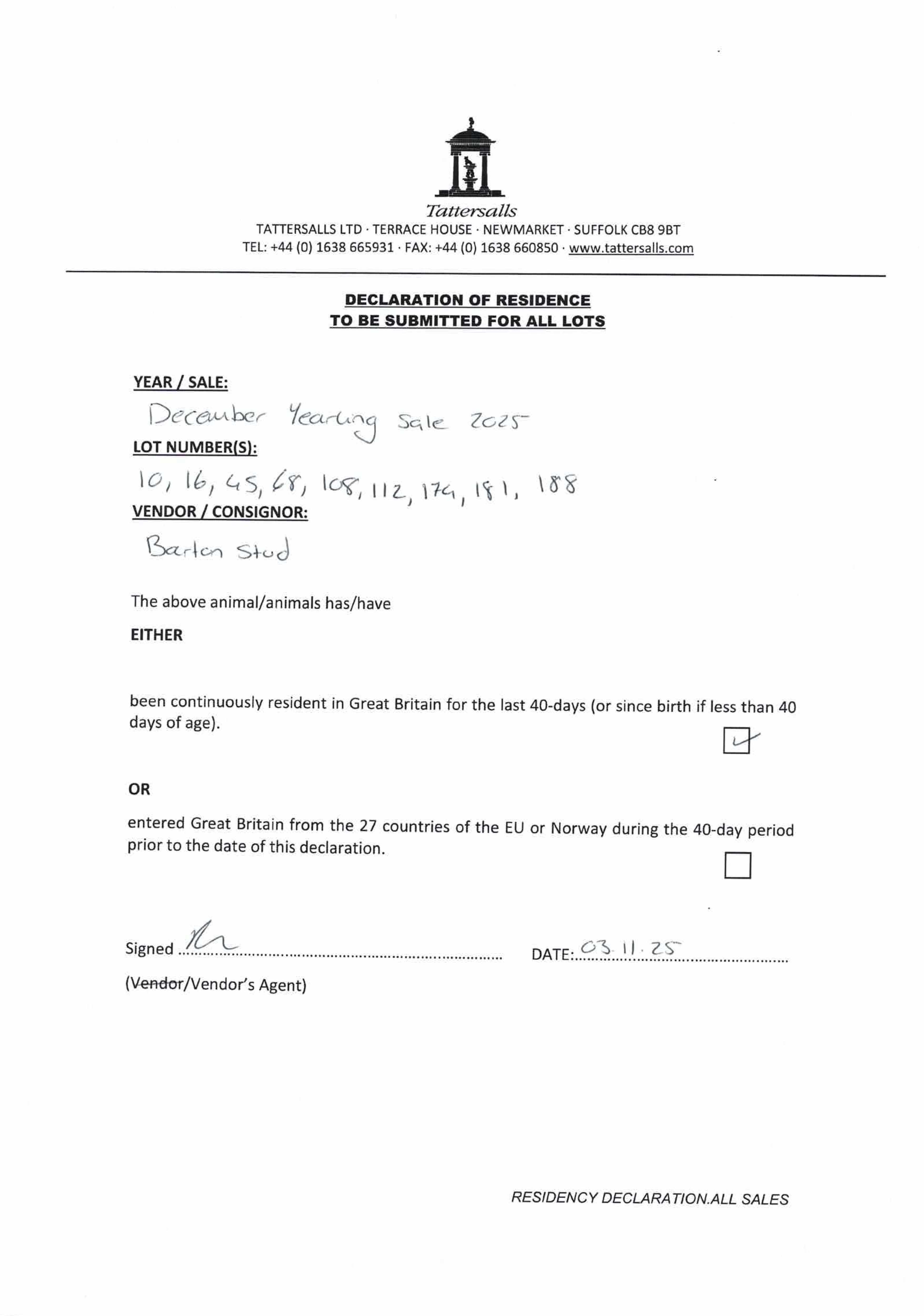 Consignor: Barton Stud
