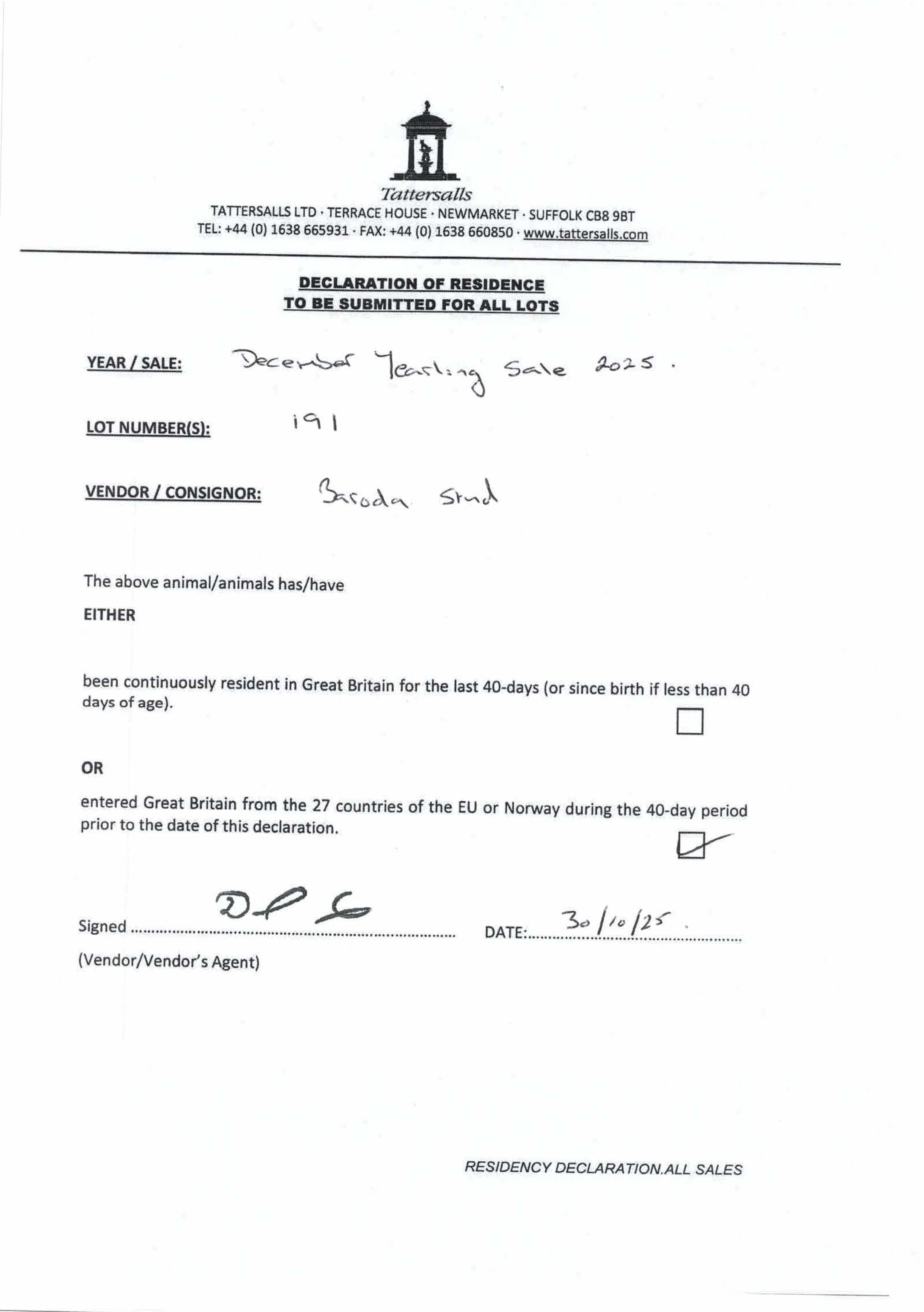 Consignor: Baroda Stud, Ireland