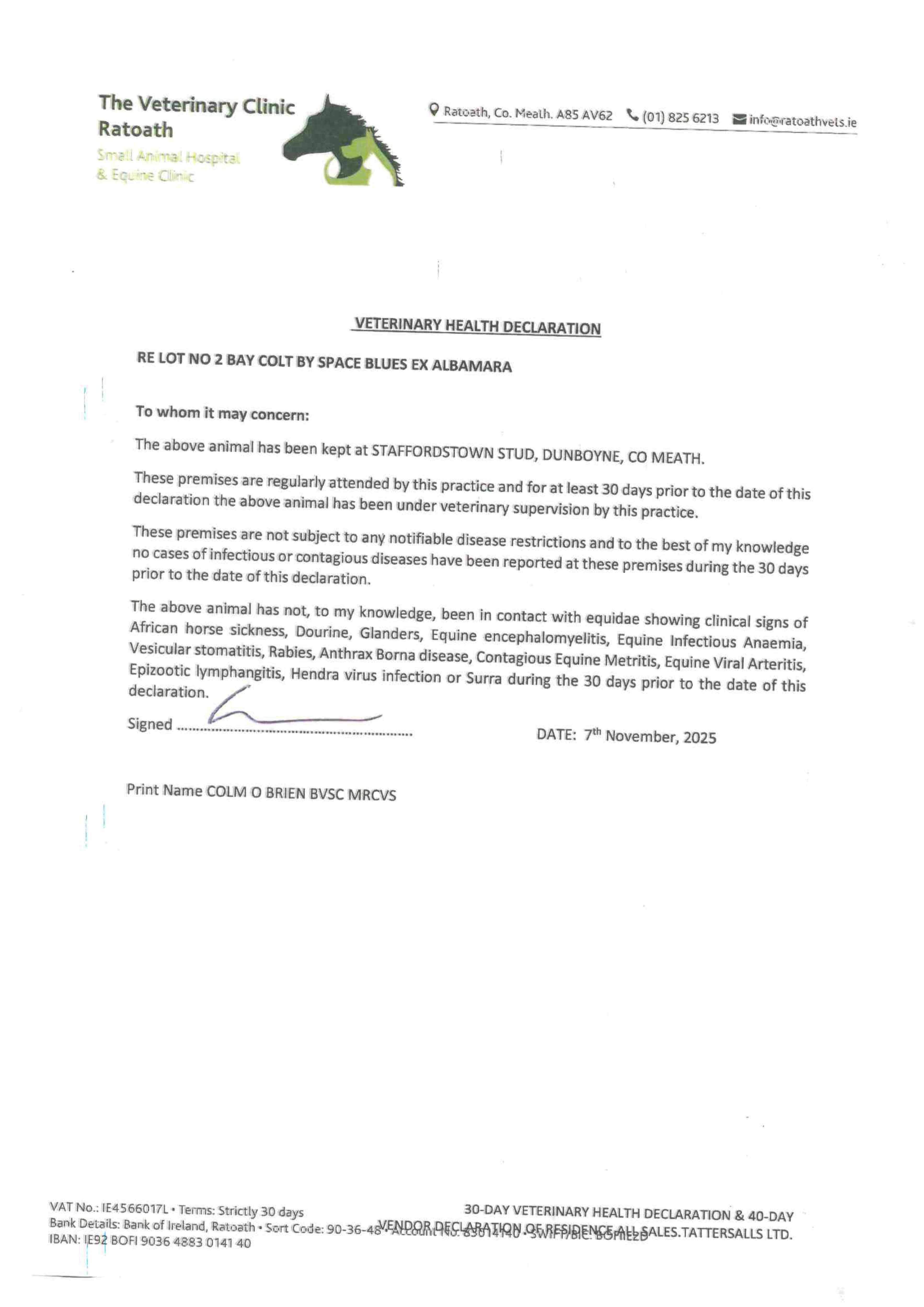Consignor: Staffordstown, Ireland