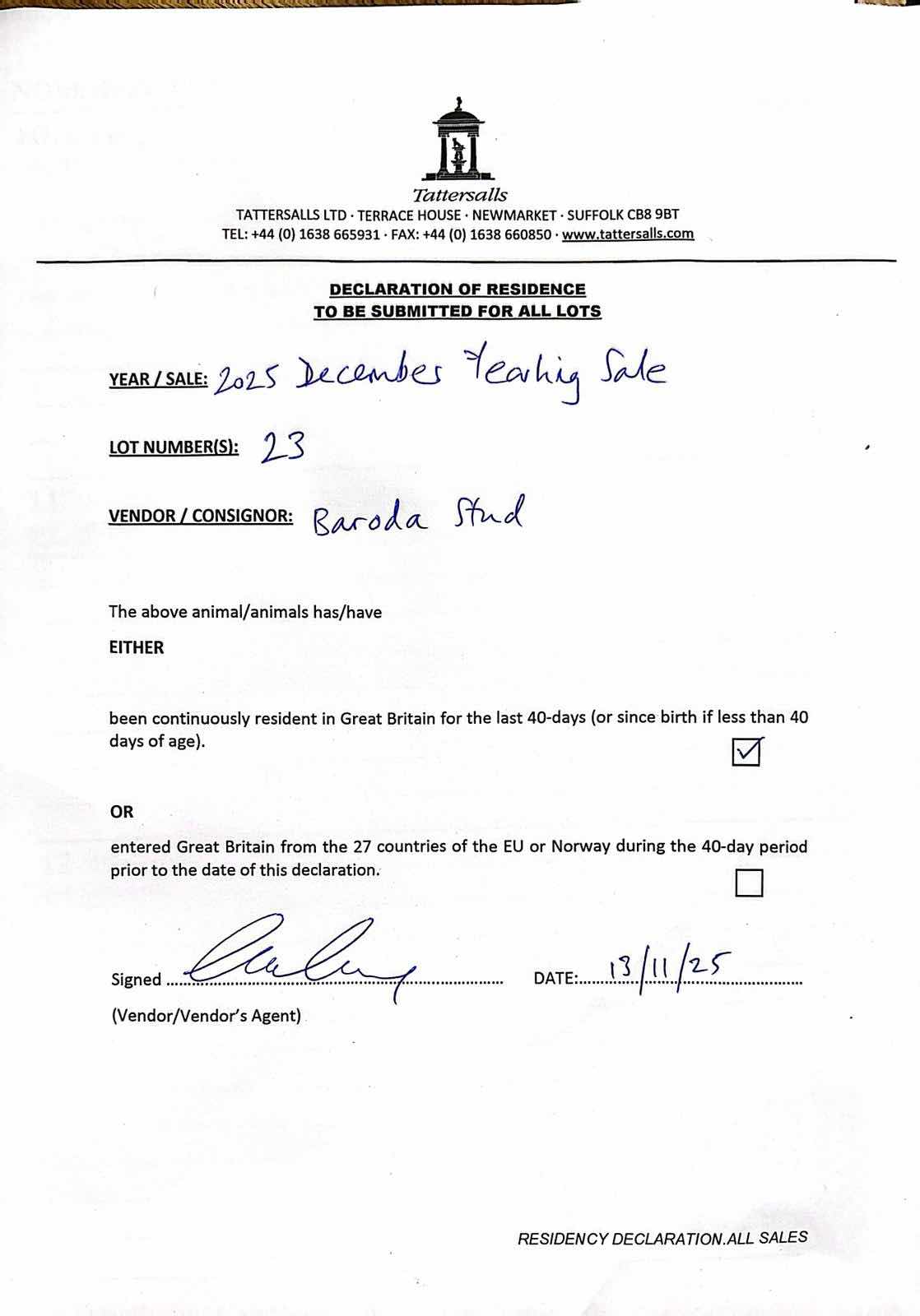 Consignor: Baroda Stud, Ireland