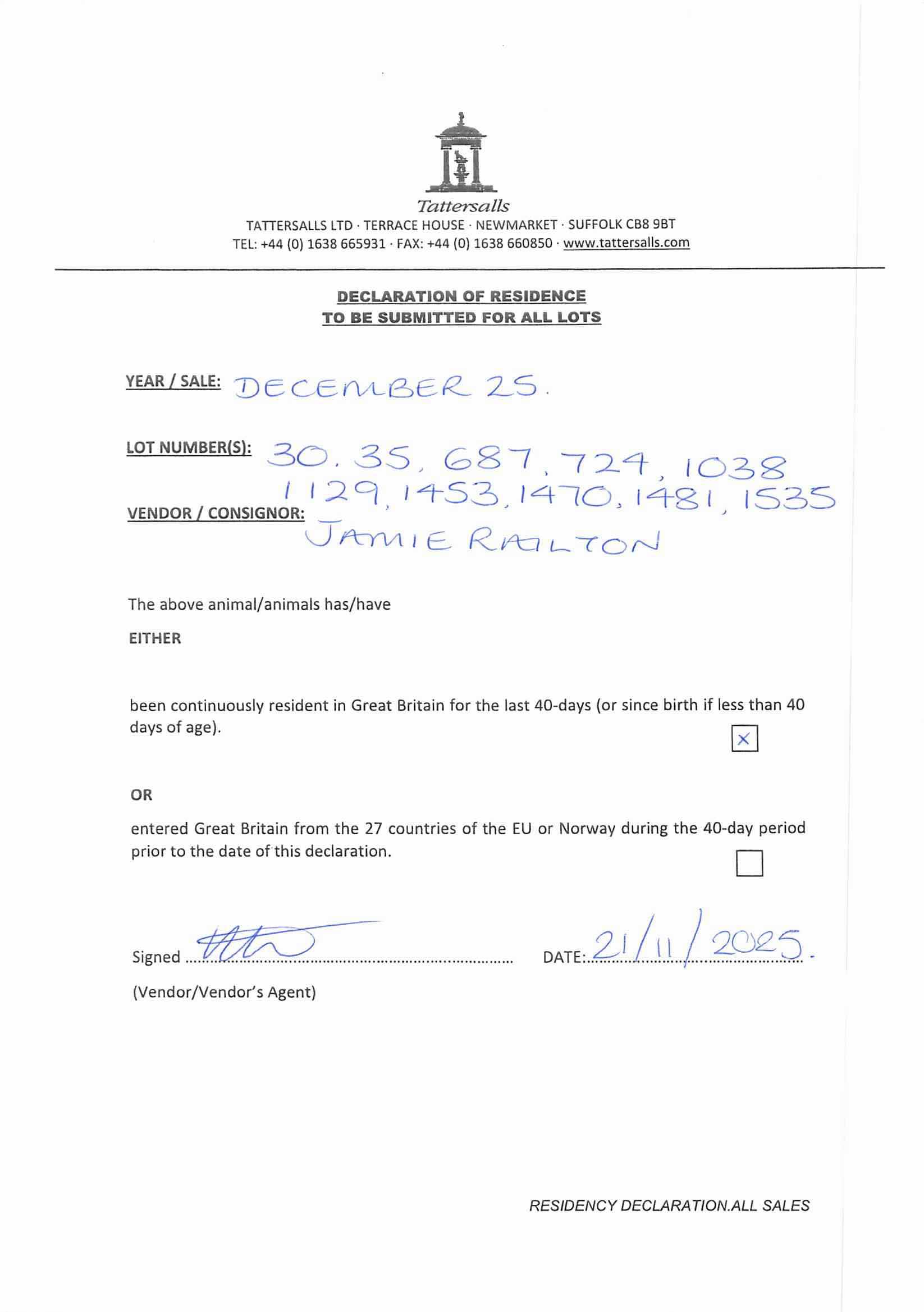 Consignor: Jamie Railton (Agent)