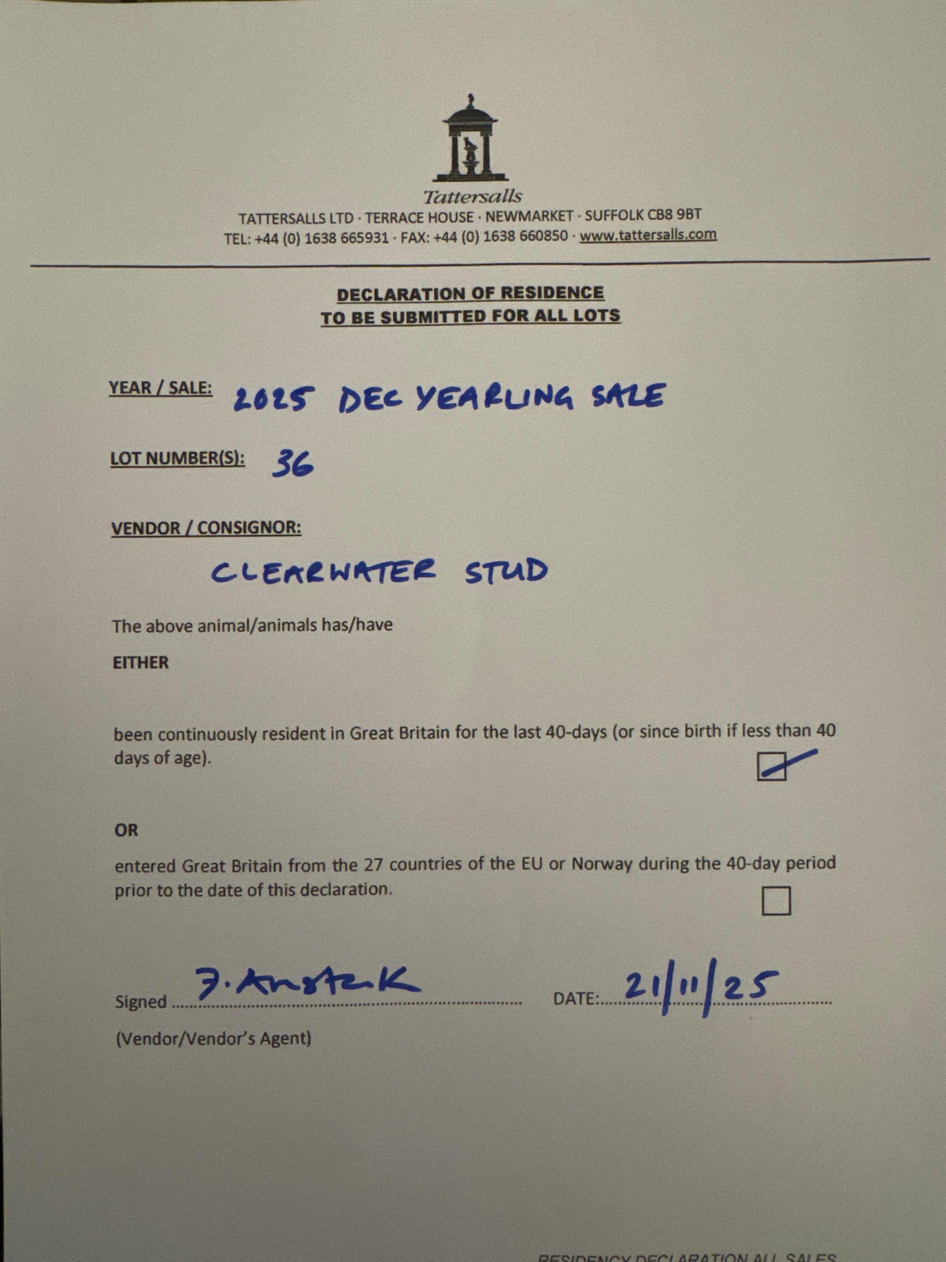 October Yearling Sale, Book 3 2024 lot 1603 F. by Australia (GB) 2023, Clearwater Stud=>Argamia Bloodstock 1,000 gns